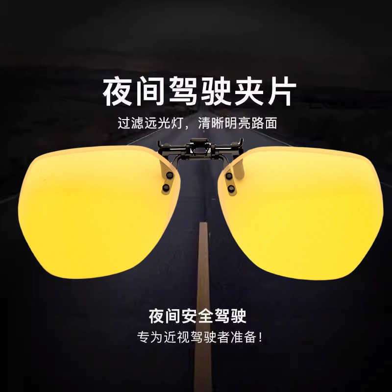 夜视眼镜夹片夜晚开车专用防眩光驾驶镜防远光灯偏光近视镜片夜间