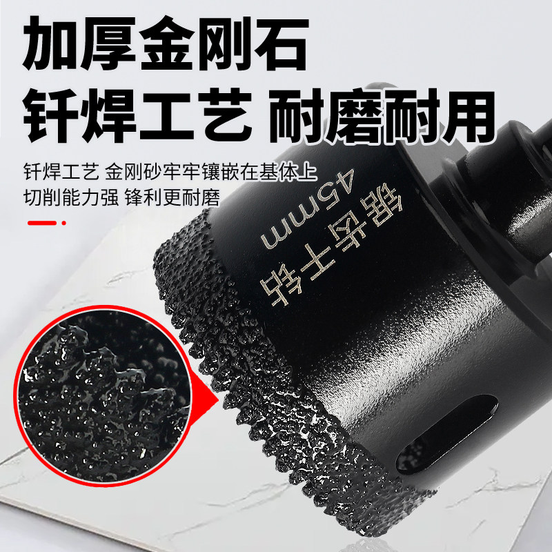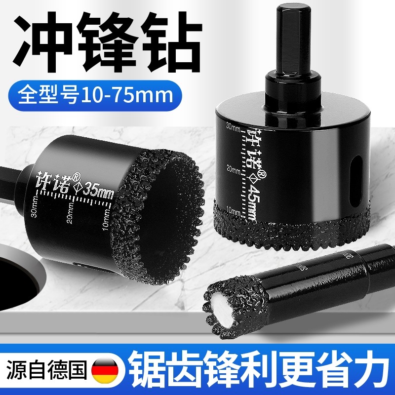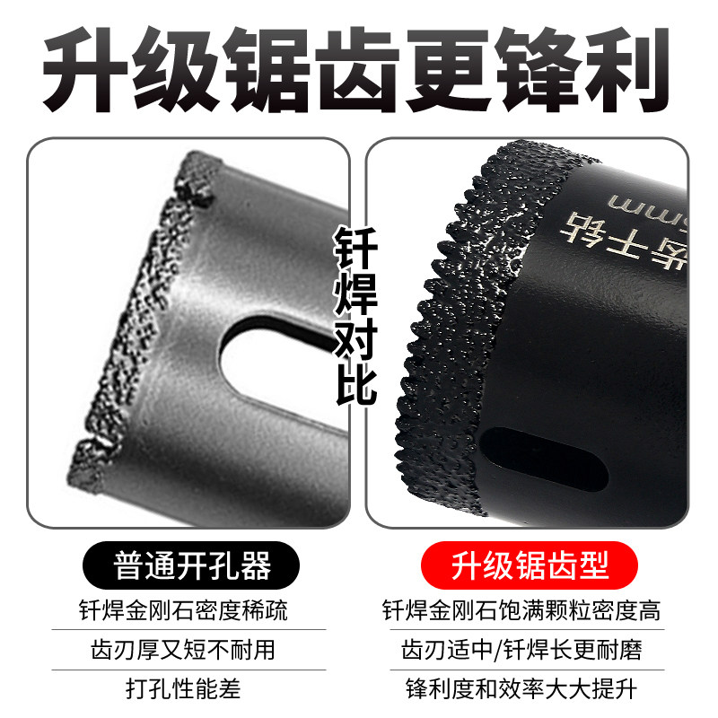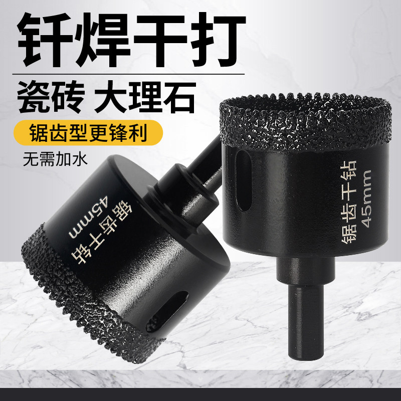 许诺干打钻头钎焊开孔器锯齿金刚石瓷砖岩板大理石打孔钻头