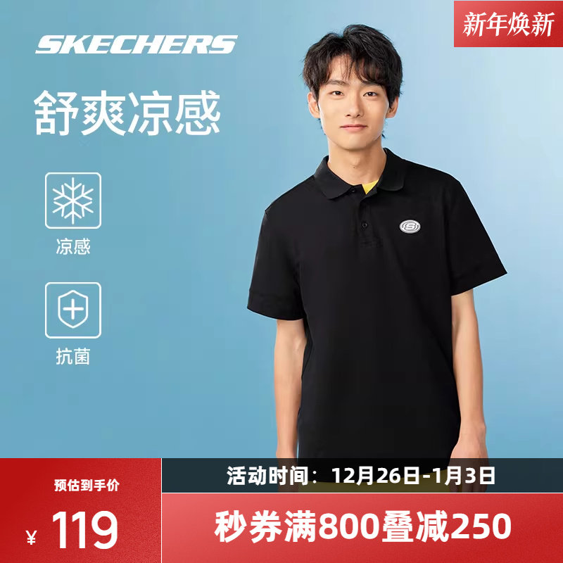 斯凯奇POLO衫男士休闲透气落肩凉感速干T恤短袖舒适百搭轻盈