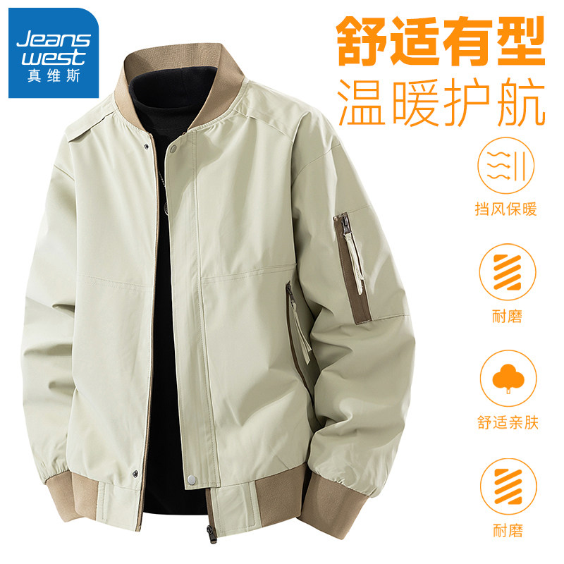 N5真维斯外套男2025秋季新款美式潮牌棒球领宽松休闲男士春秋夹克