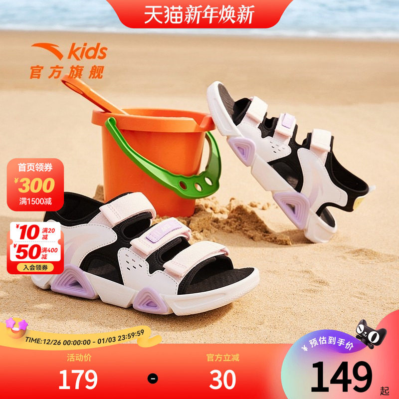 安踏女童沙滩鞋2025年夏季新款女大童露趾童鞋透气运动鞋儿童凉鞋