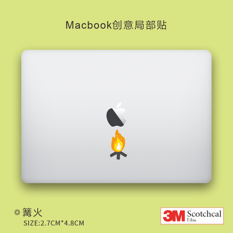 艺贴进口铸造级带导气槽 卡通篝火 笔记本电脑平板手机外壳局部装饰贴纸贴画个性创意美容遮瑕防水撕下不留胶
