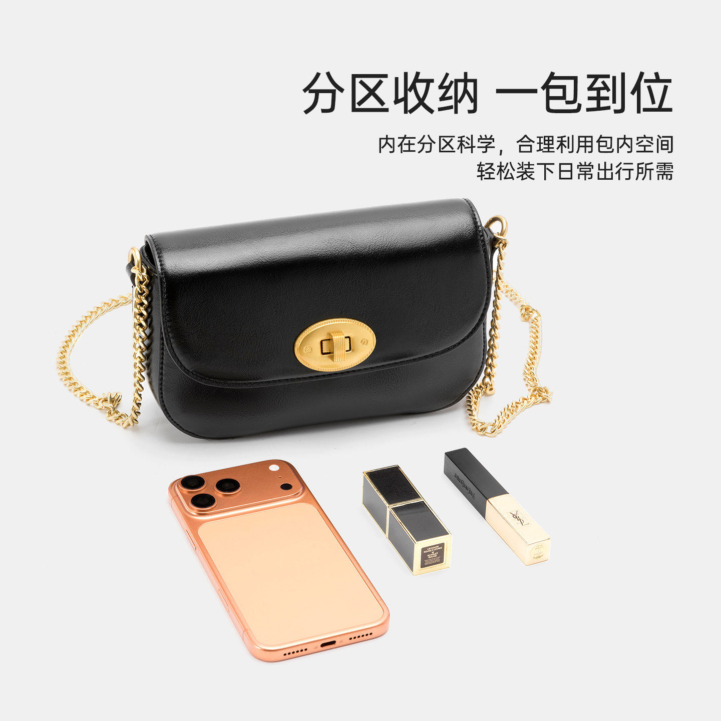 奥康 女包2026新品锁扣翻盖链条斜挎包女小方包高级感极简风