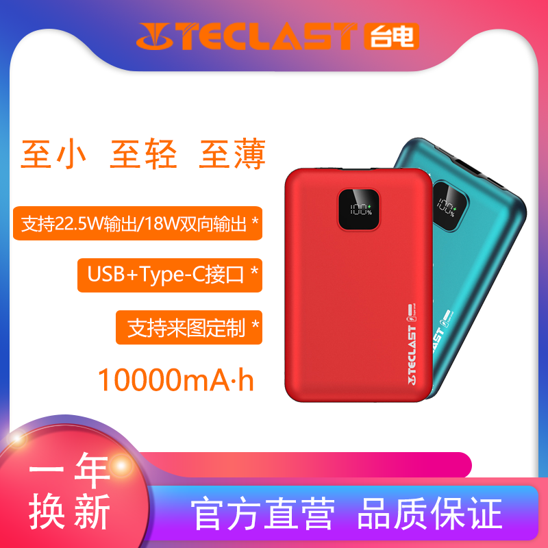 【3C认证充电宝】TECLAST 充电宝10000毫安移动电源22.5W双向快充超薄小巧定制logo