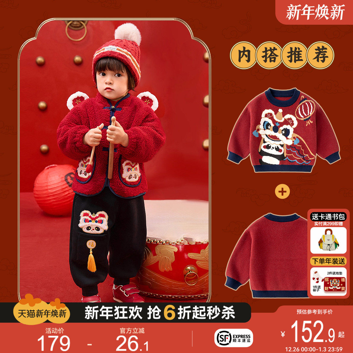 嘟嘟家儿童拜年服新年唐装男童喜庆套装女童中国风宝宝周岁礼服冬