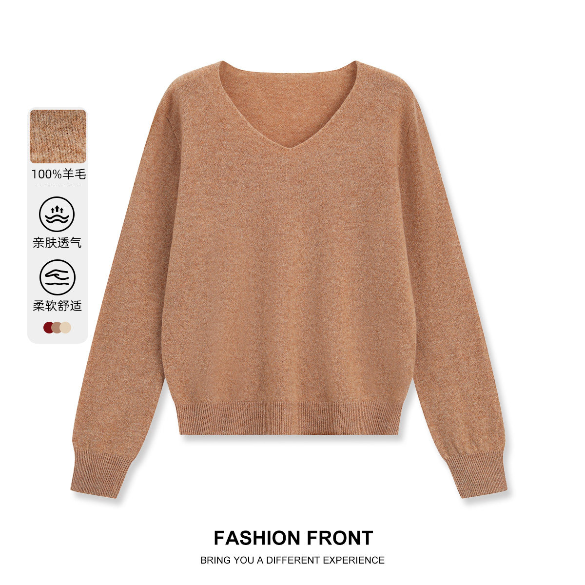 one more【100%羊毛】V领套头针织衫女2025秋款基础百搭软糯毛衣