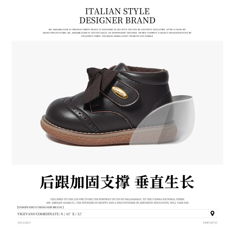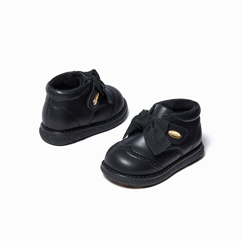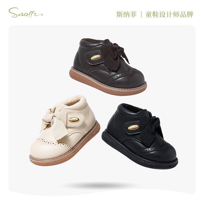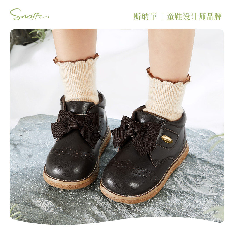 斯纳菲女童短靴秋冬新款儿童公主布洛克二棉保暖防滑加绒宝宝棉靴