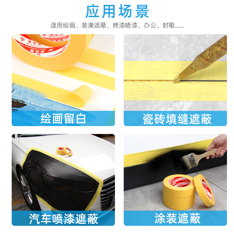 黄色美纹纸胶带家具设备喷漆烤漆保护纸汽车美容用墙面硅藻D泥喷