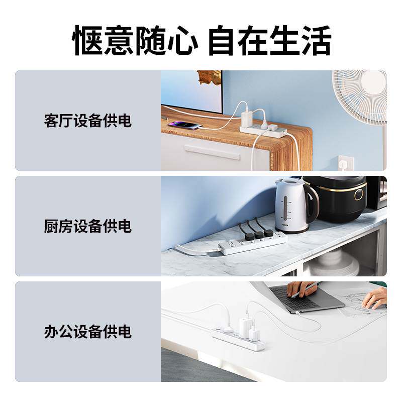 绿联 CD286绿联插排插线板插座带线分控多功能usb面板多孔家用宿