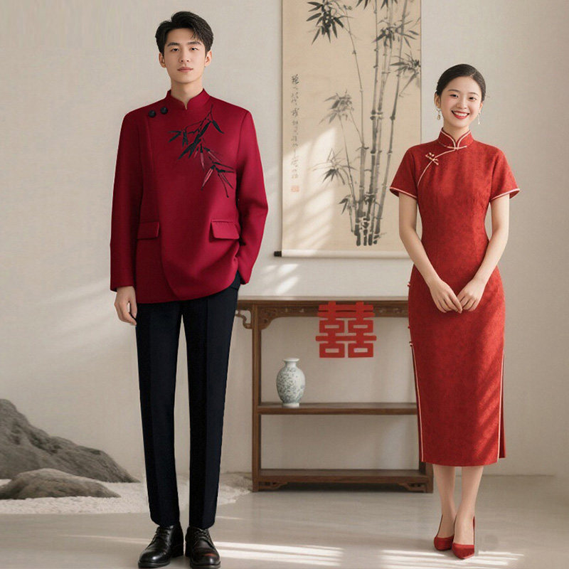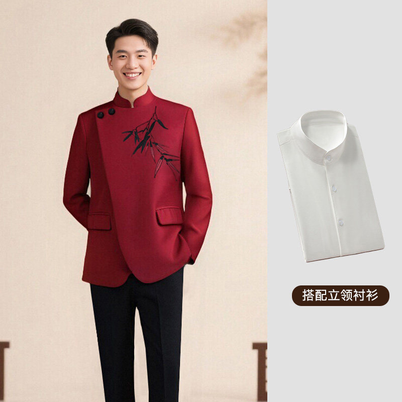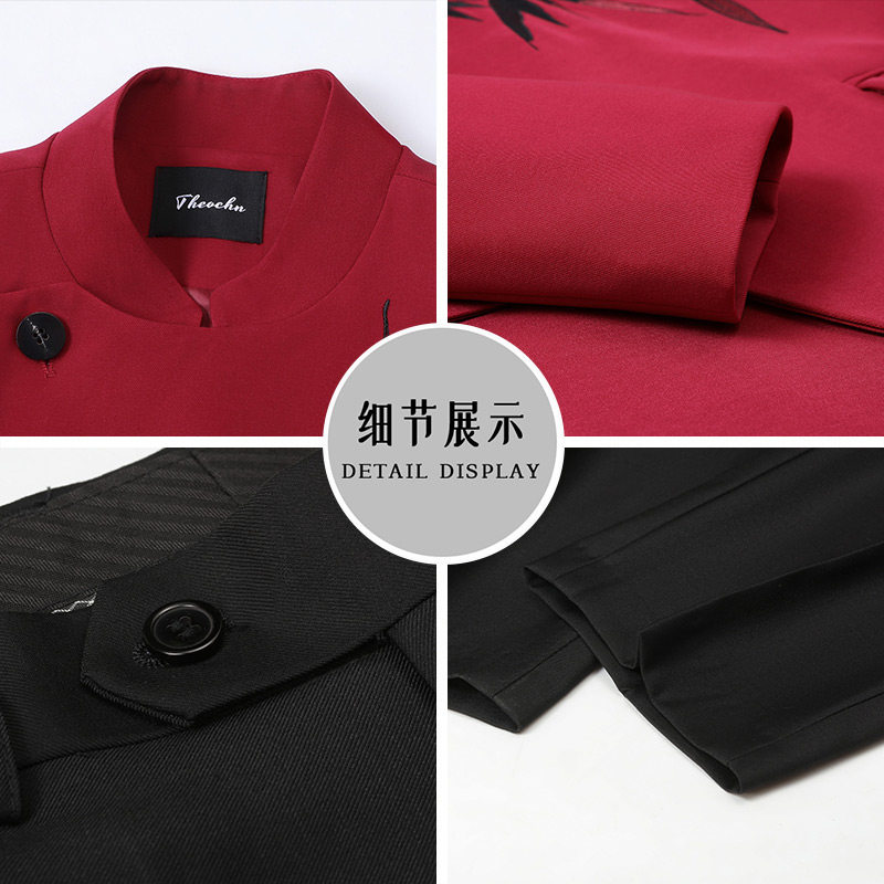 罗蒙新中式红色刺绣西服套装2026立领中山装主持人新郎订婚西装NX