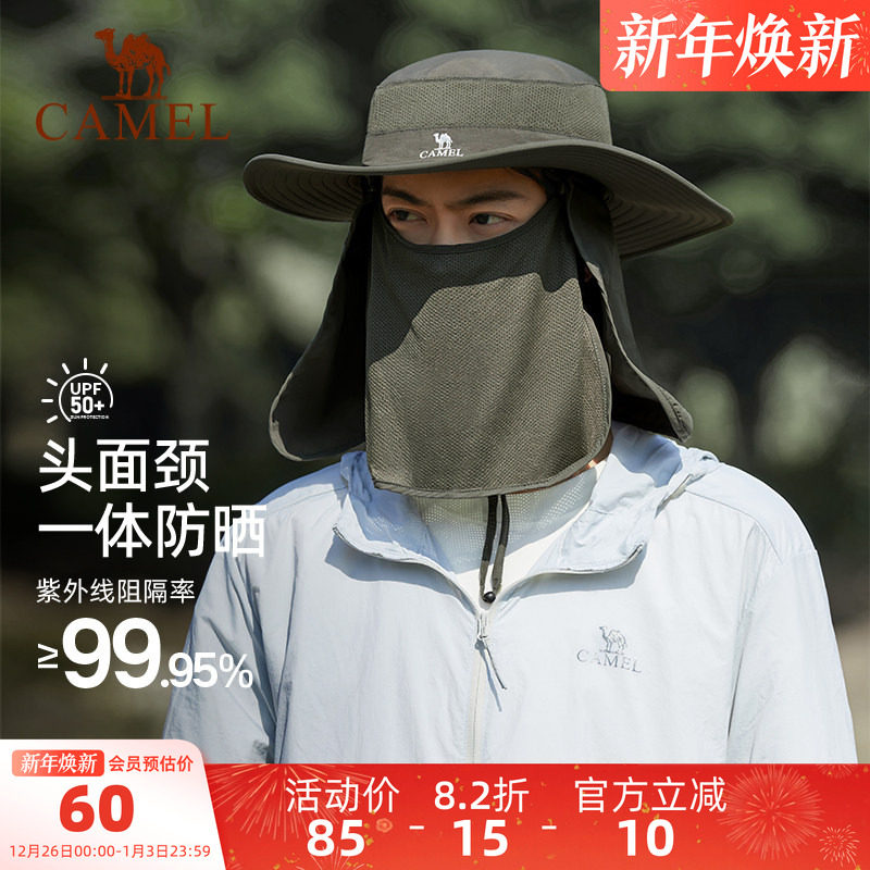 骆驼户外渔夫帽女遮阳全方位防晒帽护脸一体防晒帽多功能登山帽子