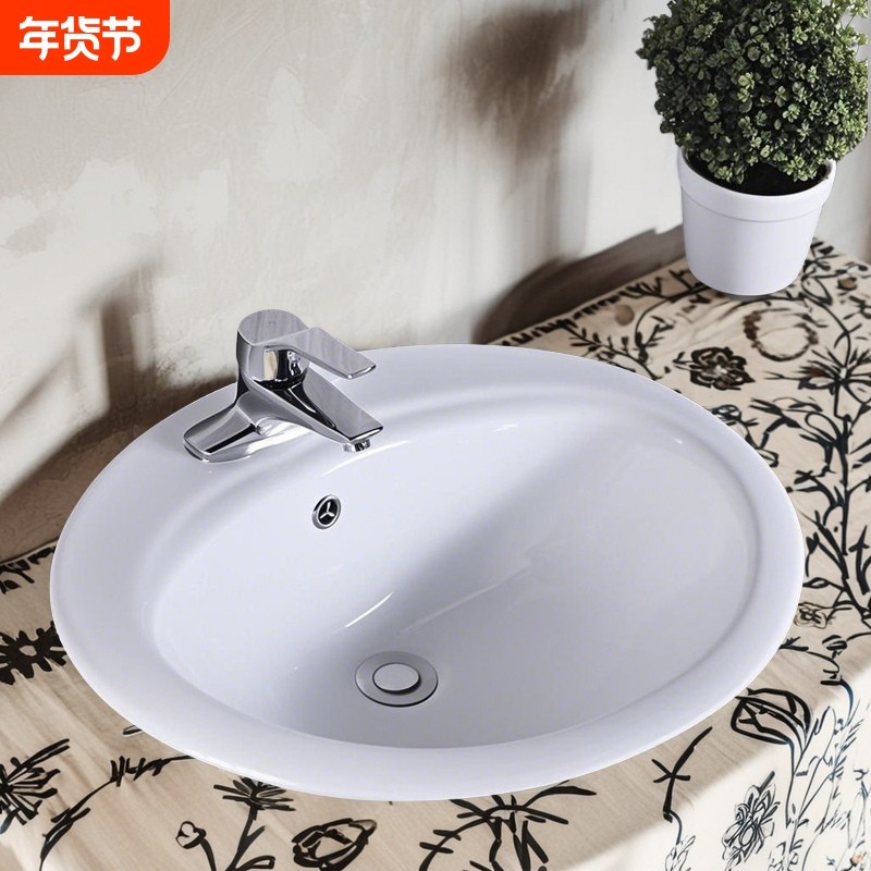 三孔老式陶瓷台中盆卫生间洗手盆浴室洗脸盆洗面盆无孔上门深度