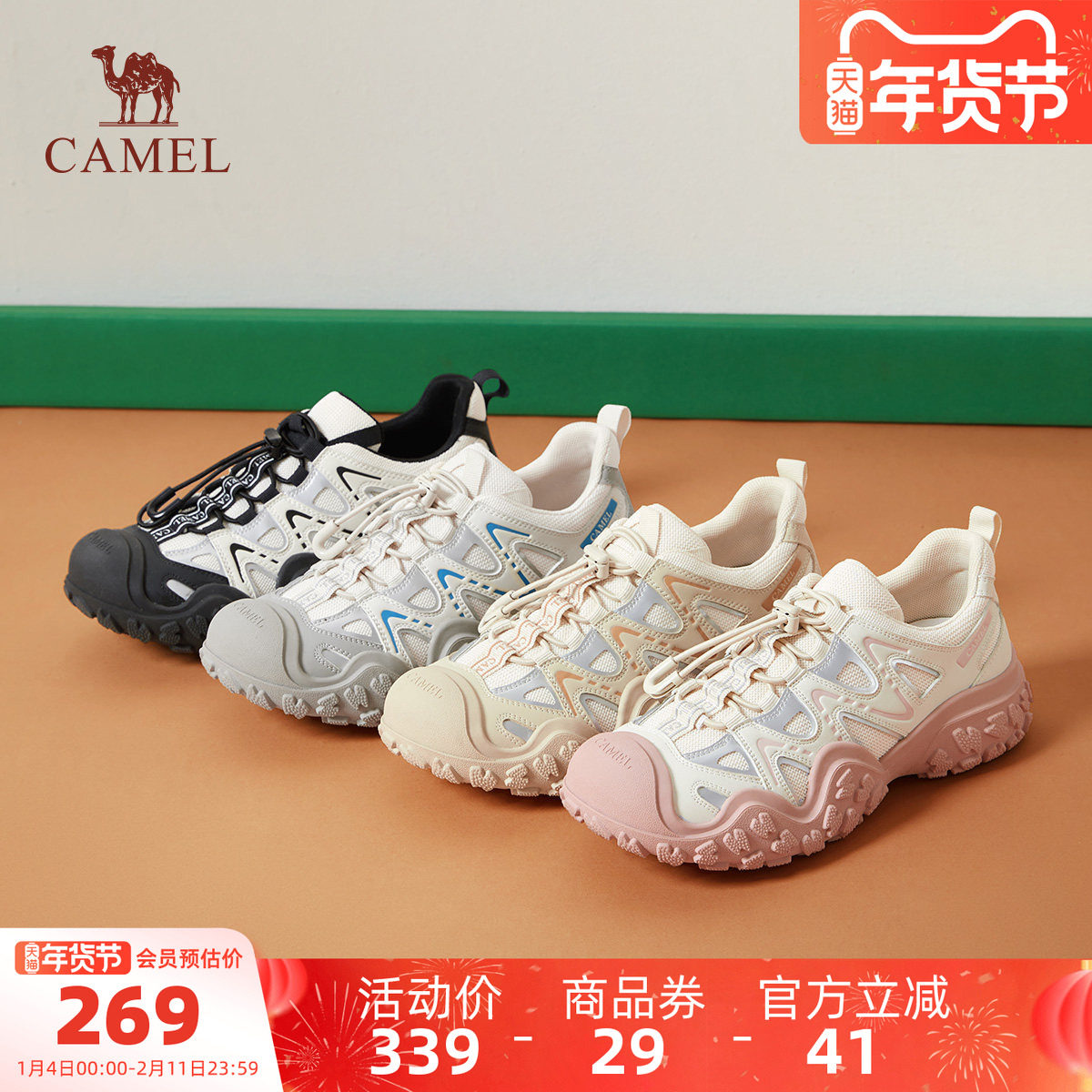 骆驼丑萌鞋女鞋2025秋季新款运动鞋女户外徒步登山鞋加绒老爹鞋子