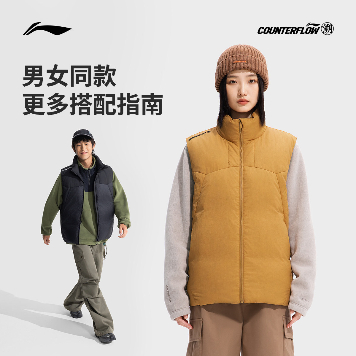 李宁户外CF溯丨羽绒马甲男女情侣立领宽松上衣冬季季鸭绒运动服