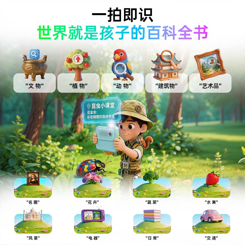 墨知星球AI户外学习机AI拍学机儿童电话手机对话故事机相机伴学机小学生AI早教玩具拍立得儿童豆包机器人
