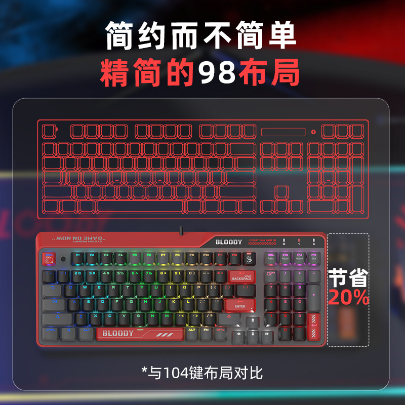 双飞燕血手幽灵F98光轴机械键盘轻音轴电竞吃鸡编程游戏网吧外设