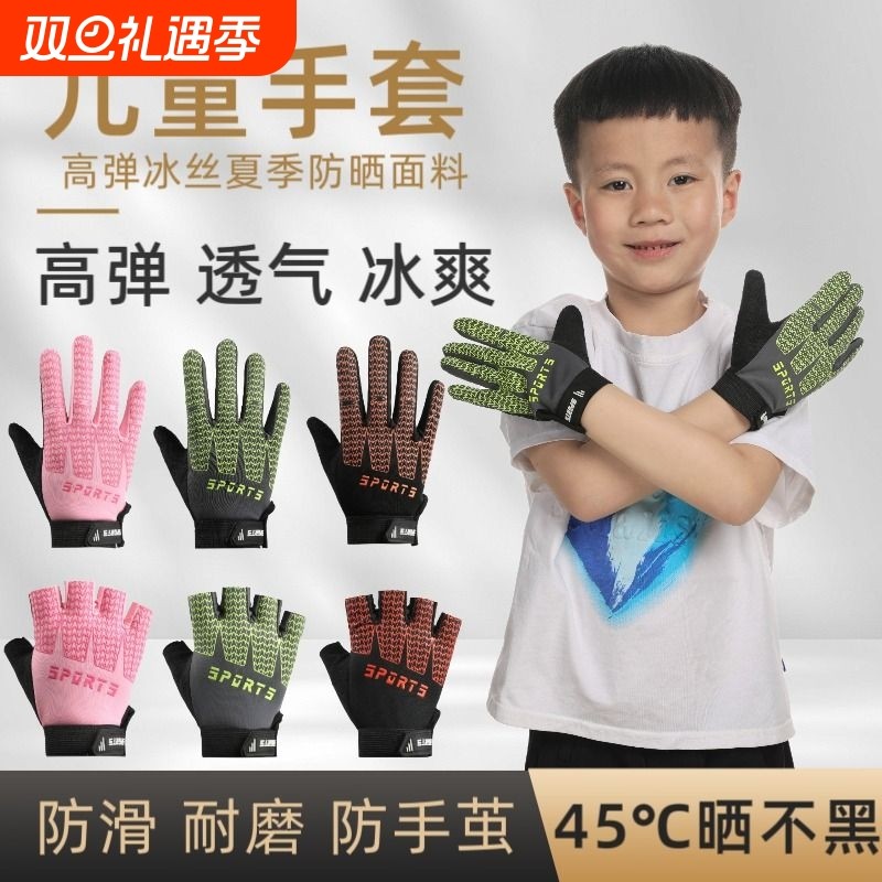 儿童登山手套男女孩子夏季薄款运动防滑骑行全指训练滑轮透气半指