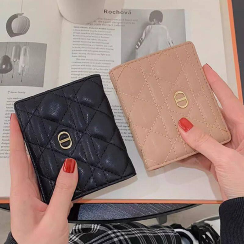 网红时尚新款绣线折叠轻奢轻薄大容量钱包高级随身女款防消磁粉色