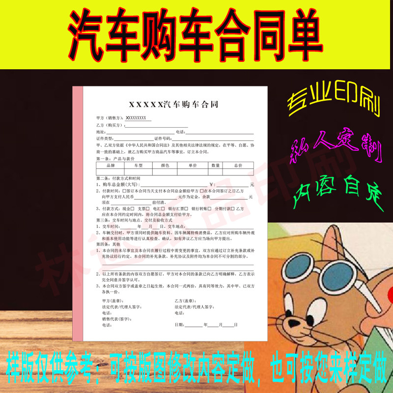 汽车订车合同书印刷定制车辆收购买卖协议售车二手交易合同书销售