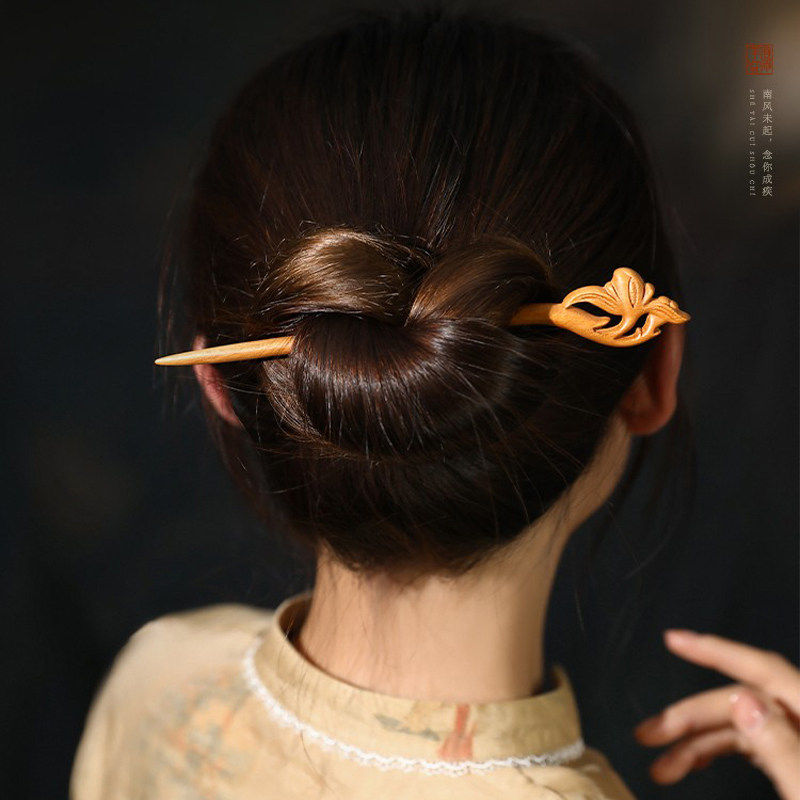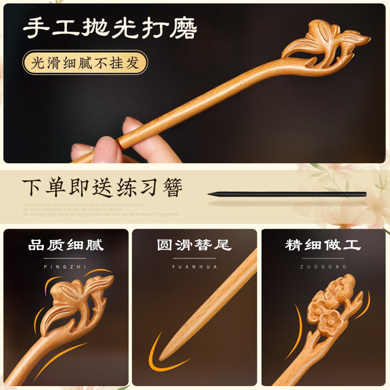 手工桃木发簪女古风高级感檀木簪子新中式木簪日常盘发发钗