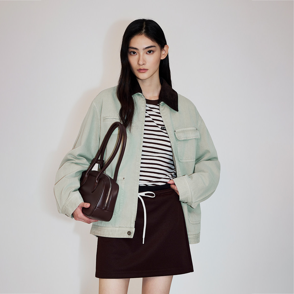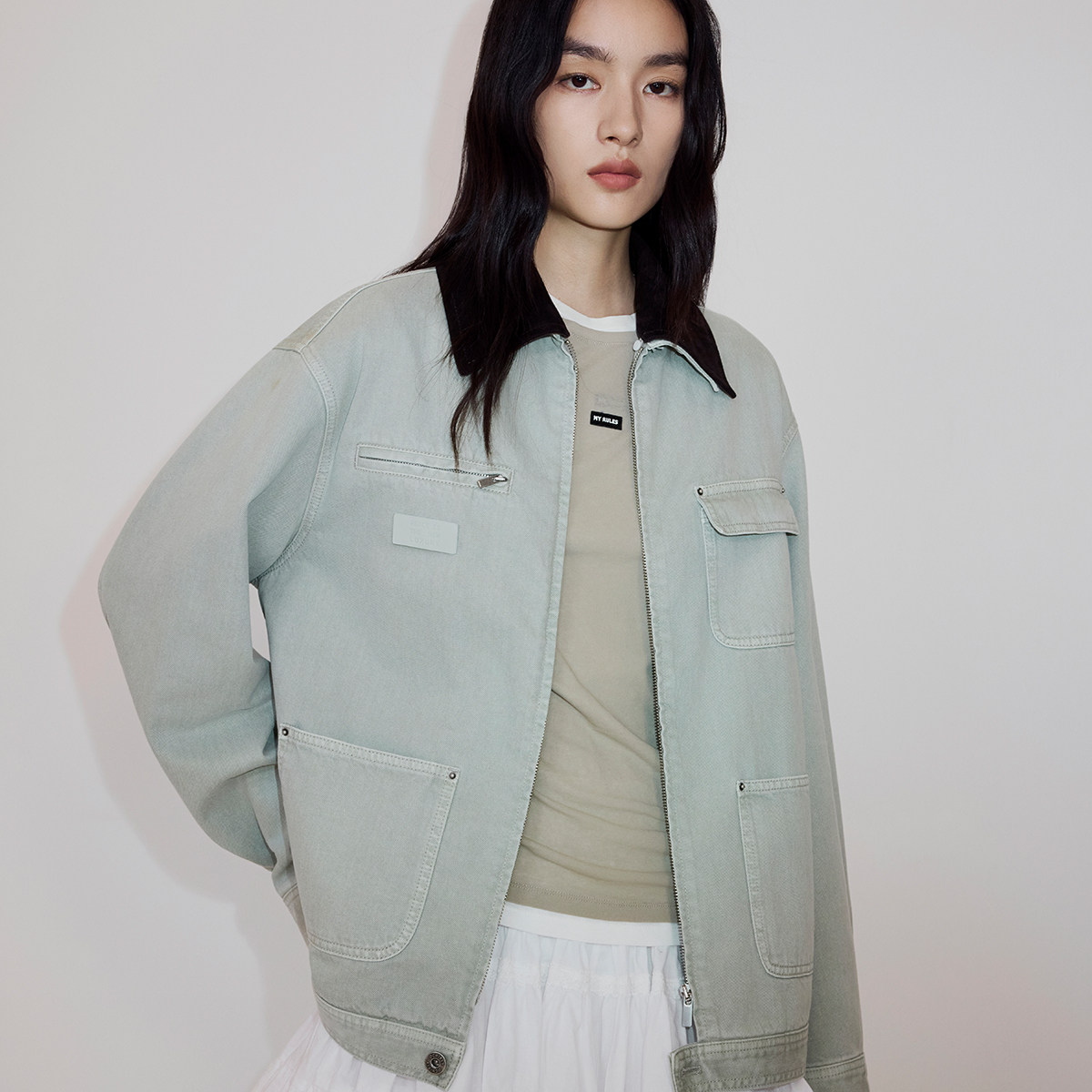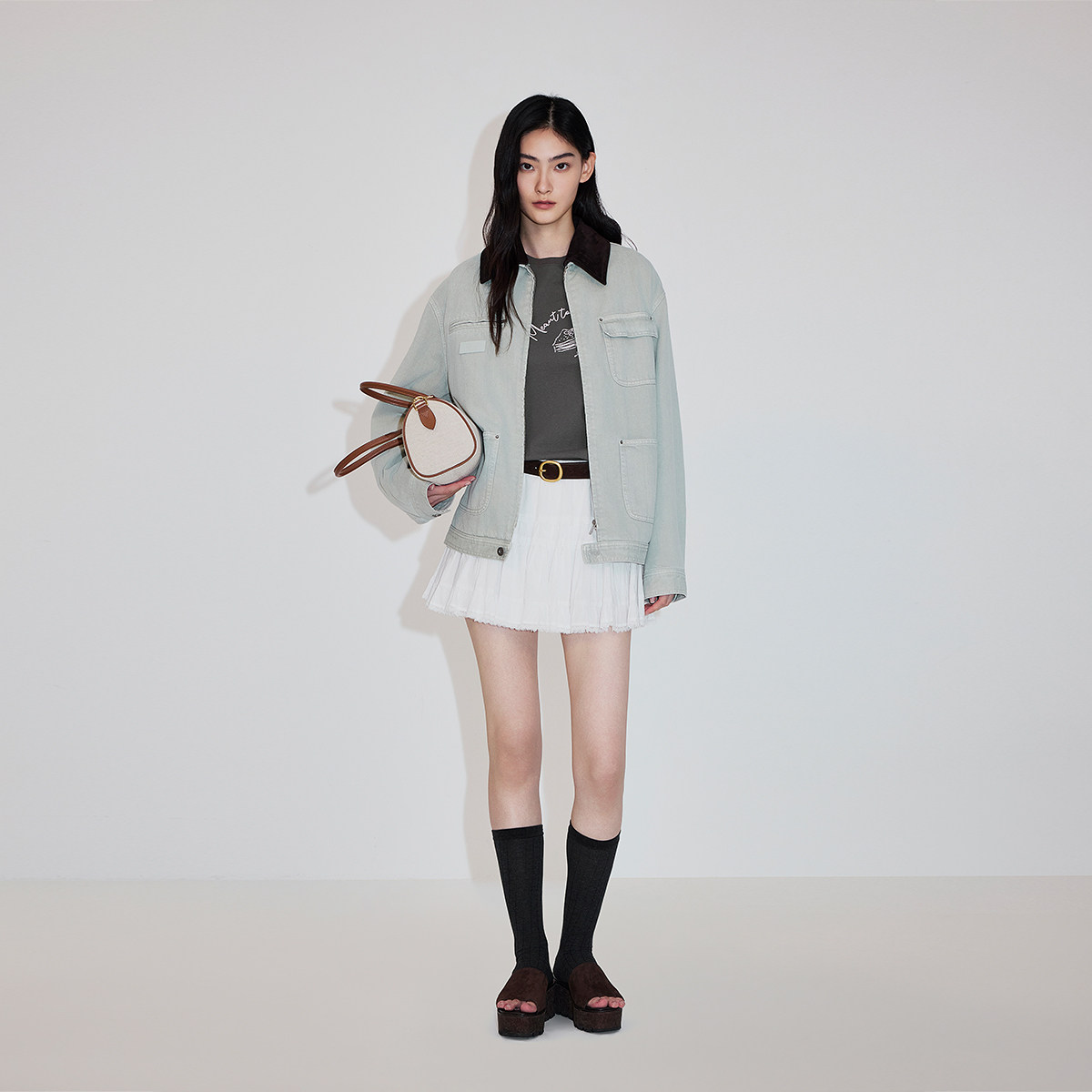 【新品】奚梦瑶同款 欧时力 牛仔外套女2026春巴恩风可拆羊皮领子