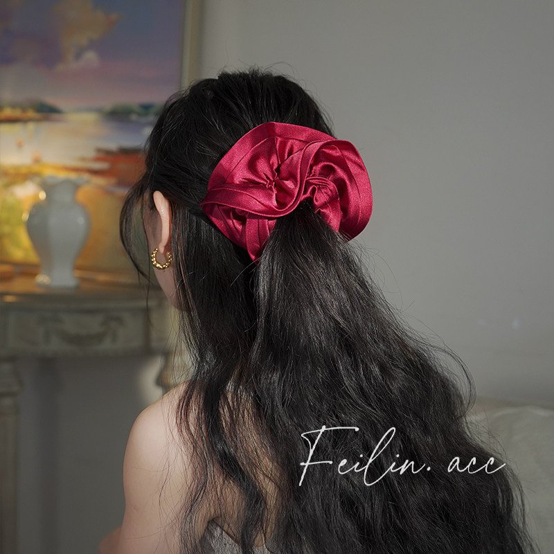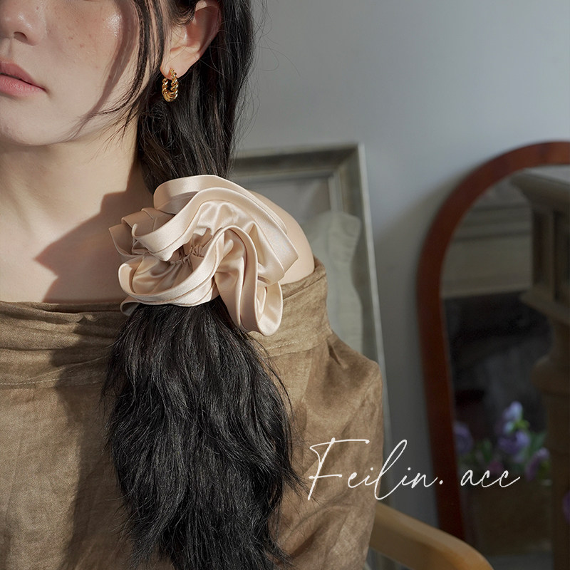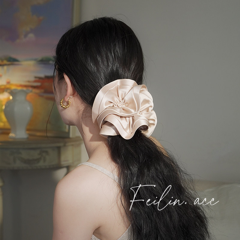 法式复古缎面大肠发圈女高级感小香风丸子头头花发绳马尾扎发发饰