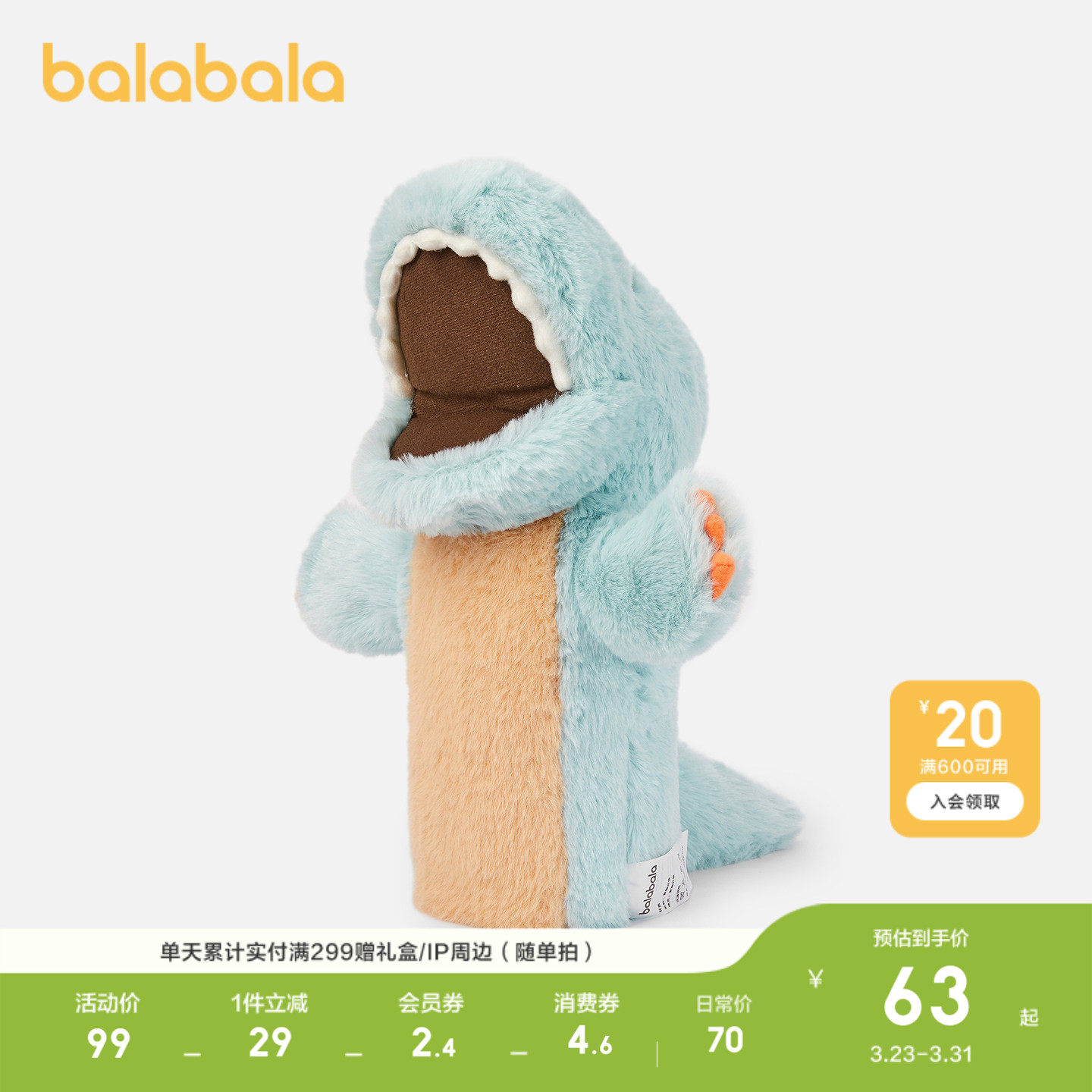 【商场同款】巴拉巴拉儿童玩具男童女童毛绒恐龙手偶柔软时尚可爱