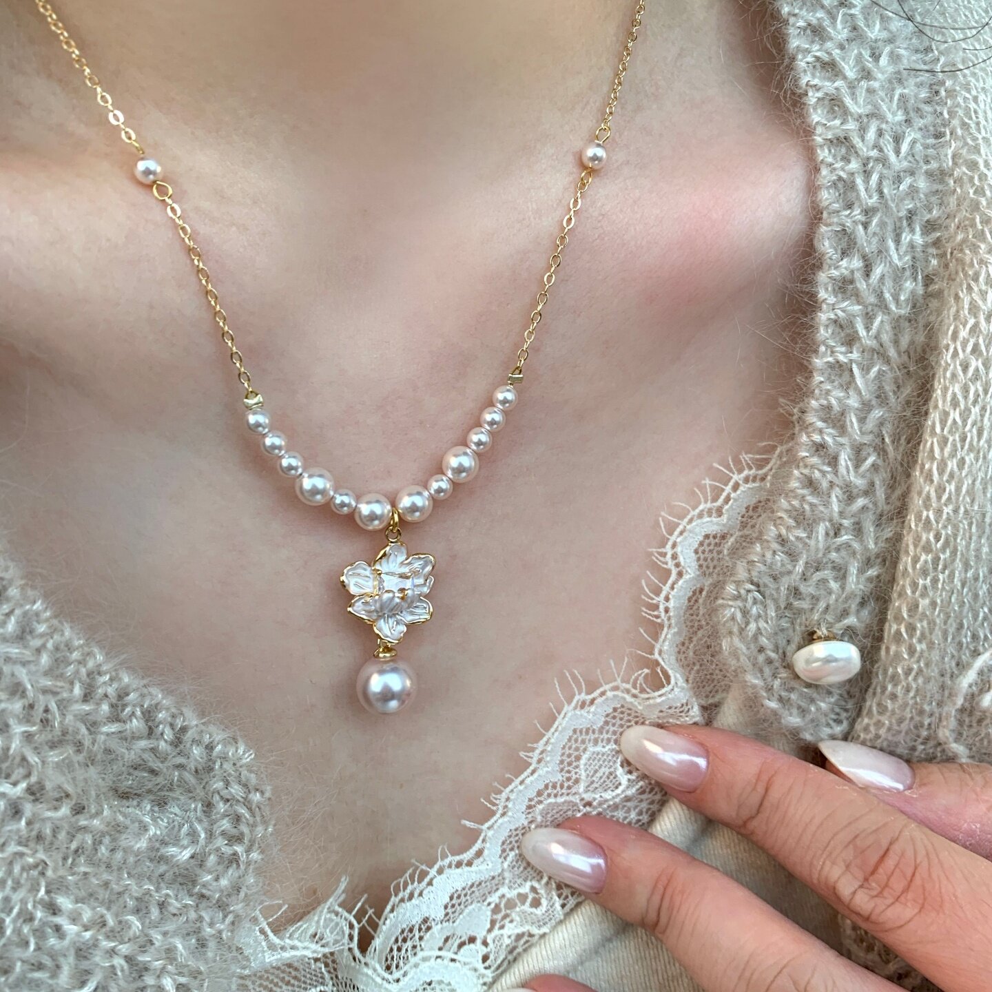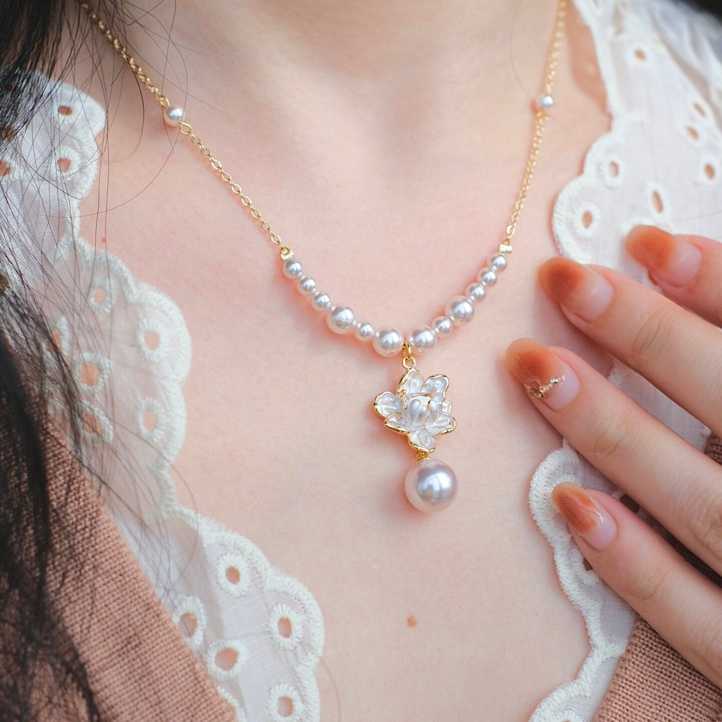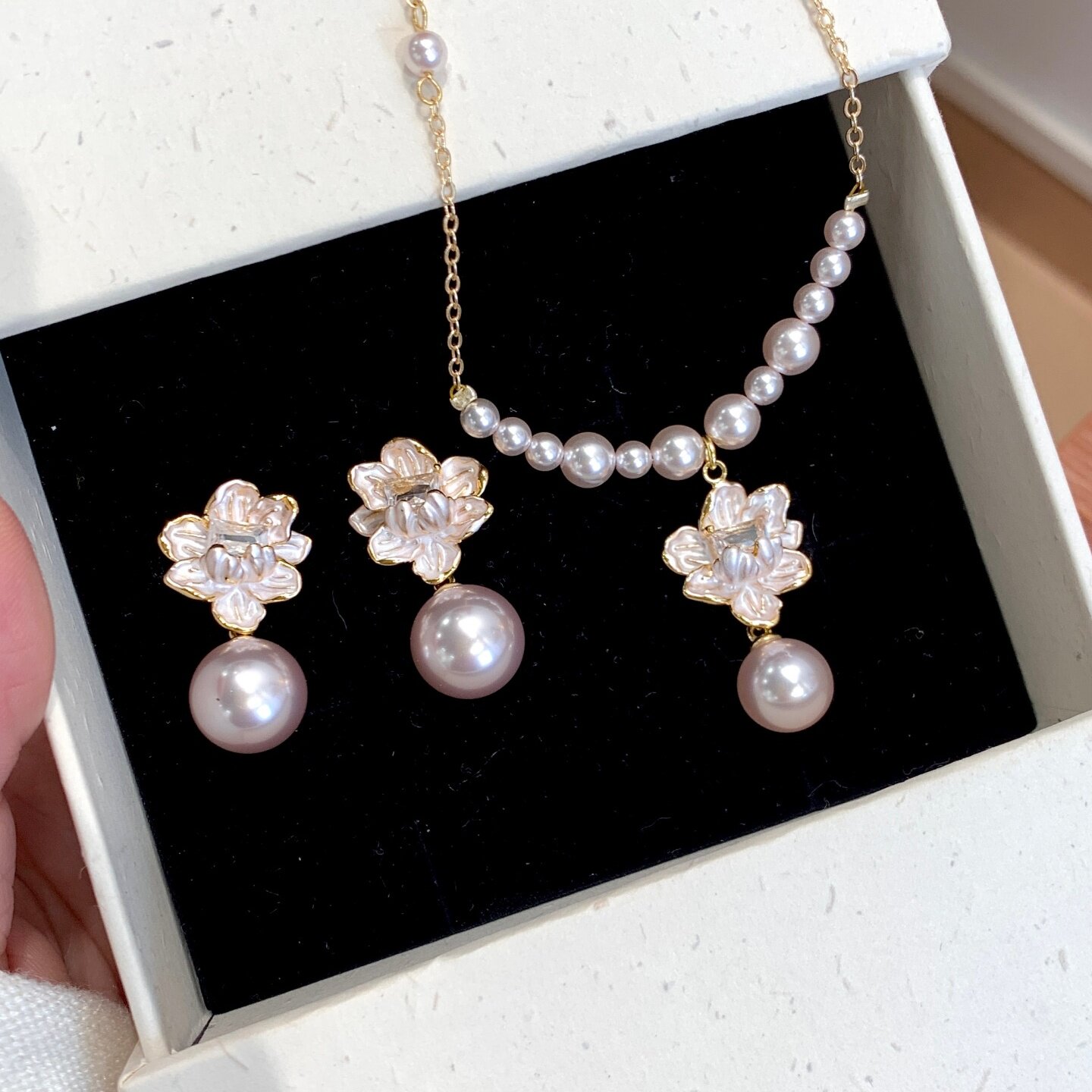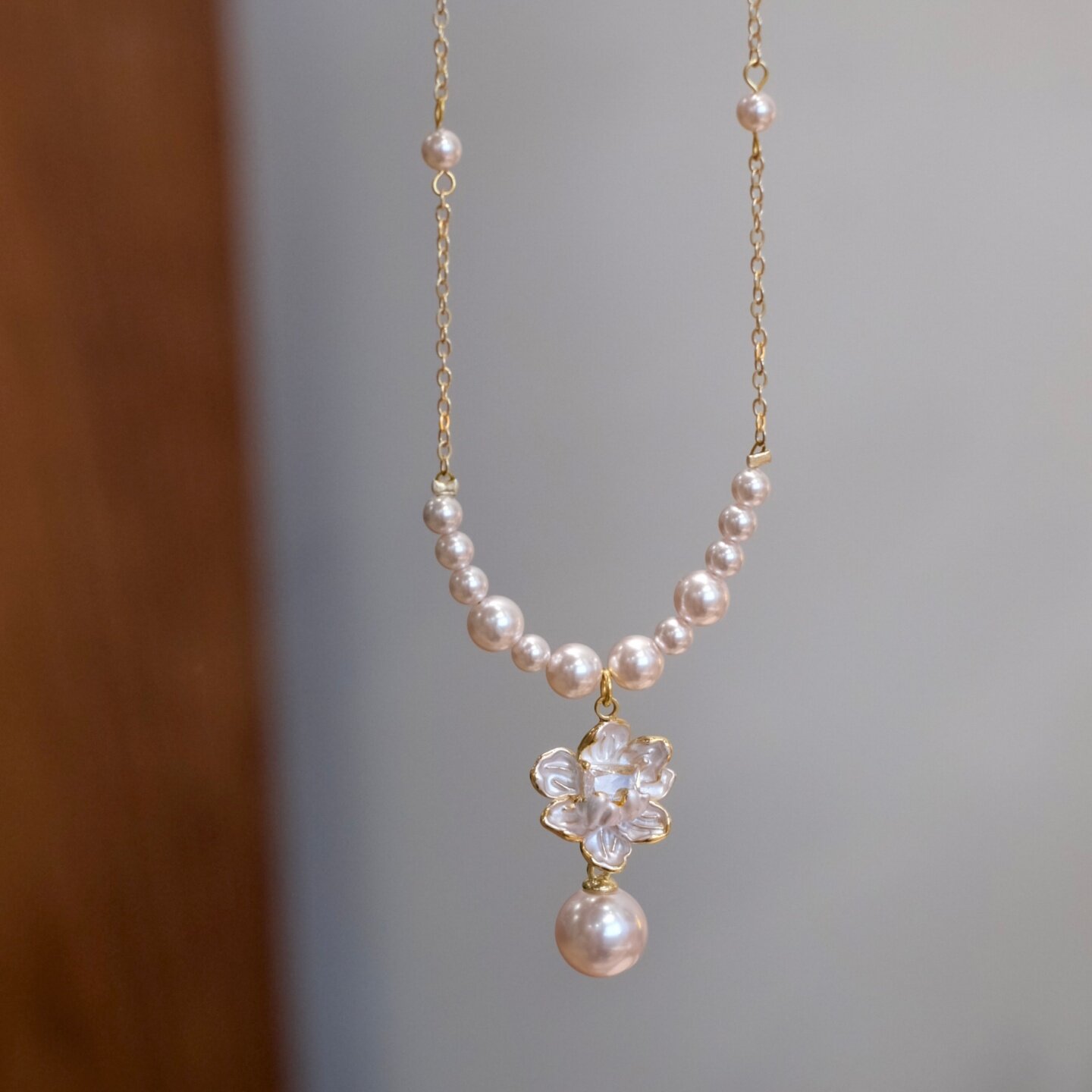 《雾生花》原创温柔优雅超仙珐琅花朵粉紫色珍珠高级感项链锁骨链