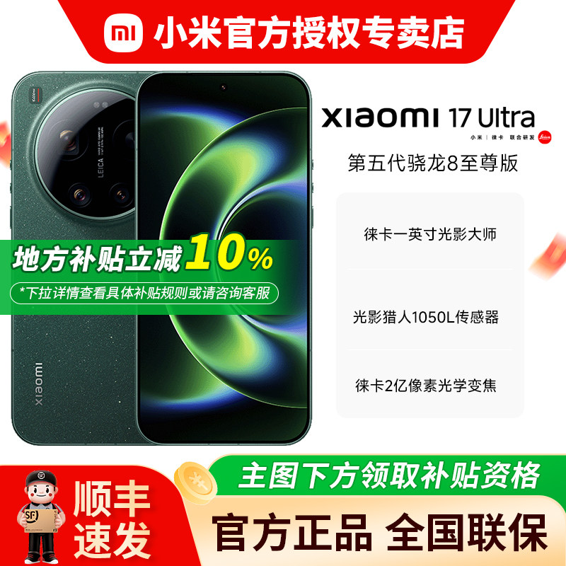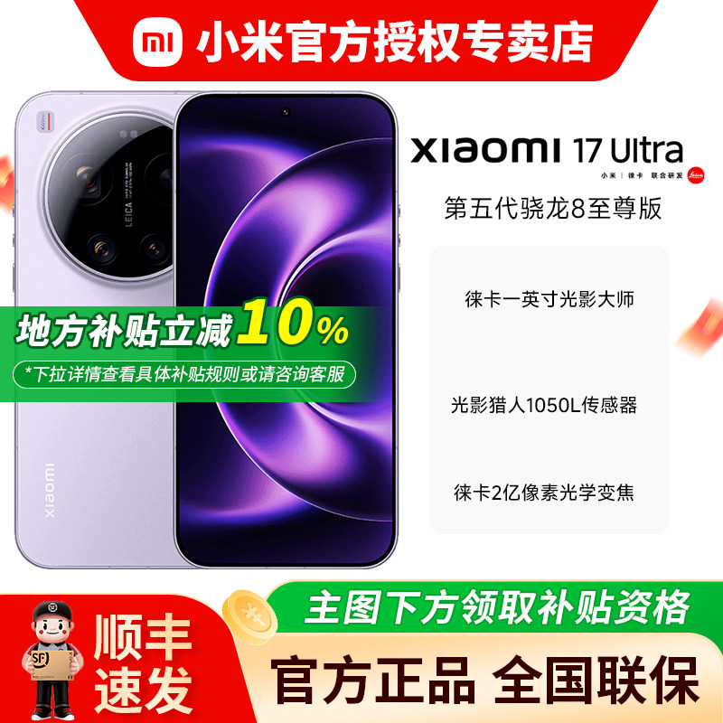 【地方补贴10%】小米 /MIUI/xiaomi17Ultra 徕卡2亿像素光学变焦 第五代骁龙8至尊版移动平台 新品手机