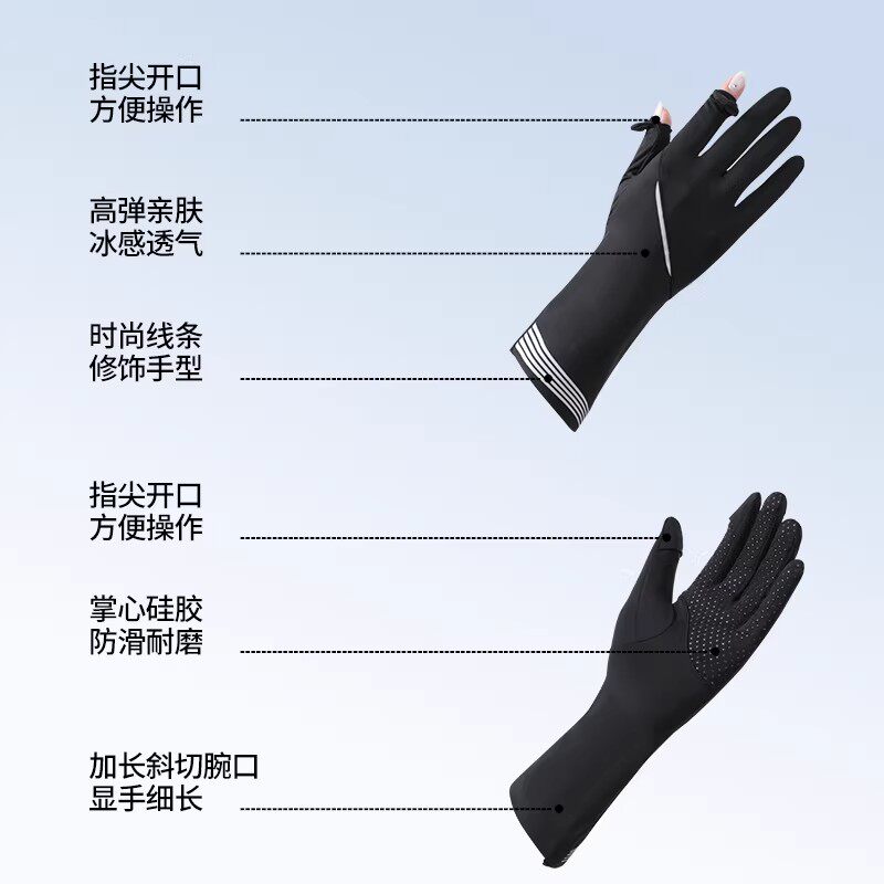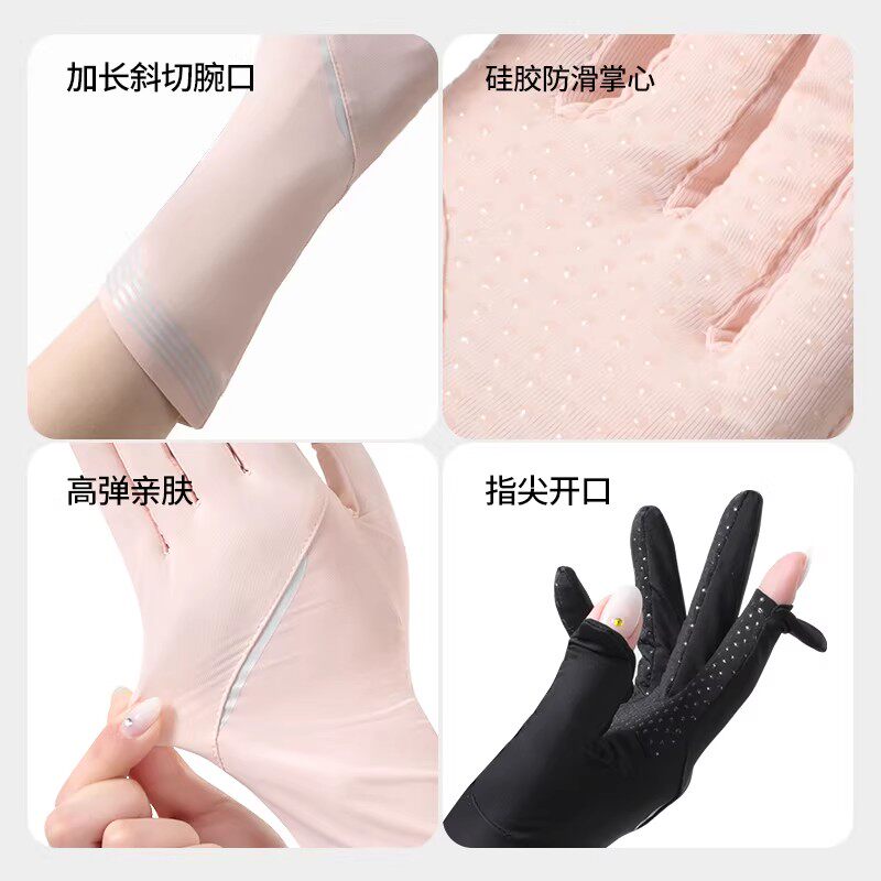 防晒手套女防紫外线冰丝露二指夏季户外电动车骑行开车手套女薄款