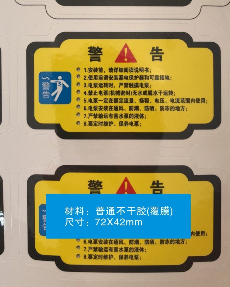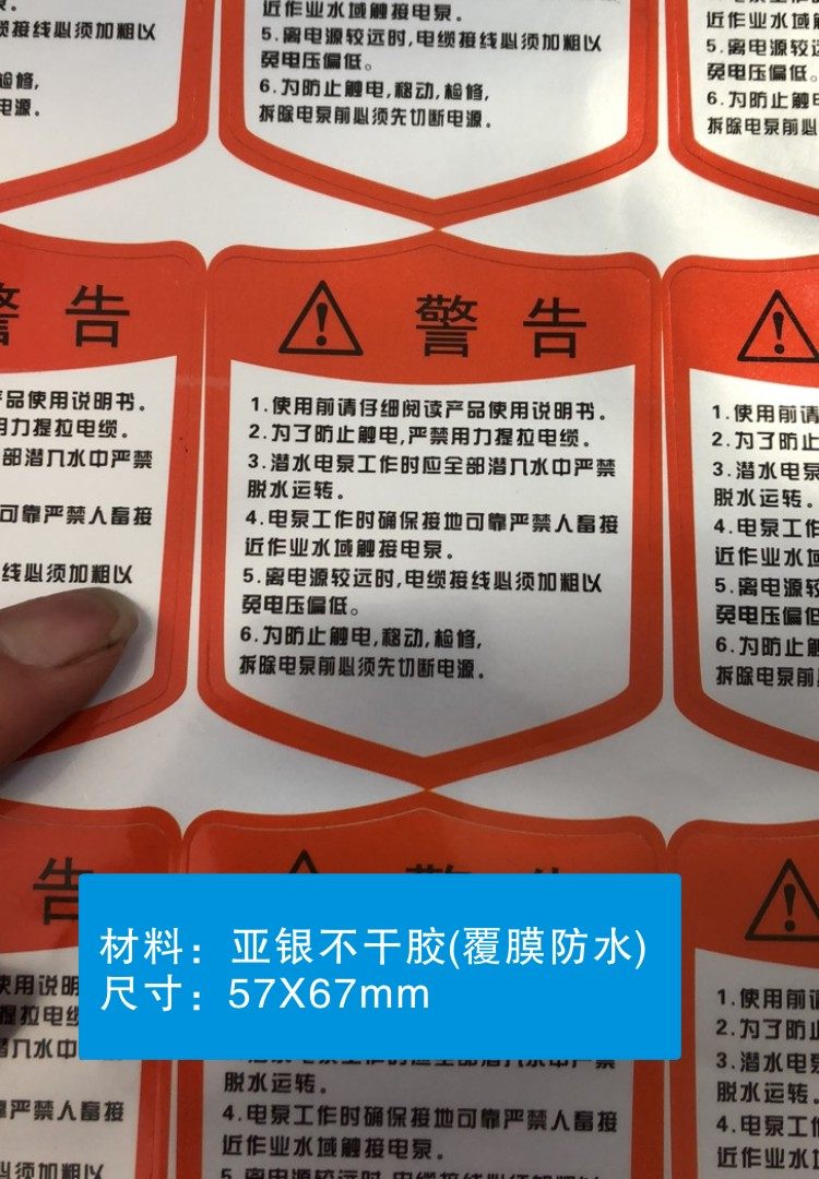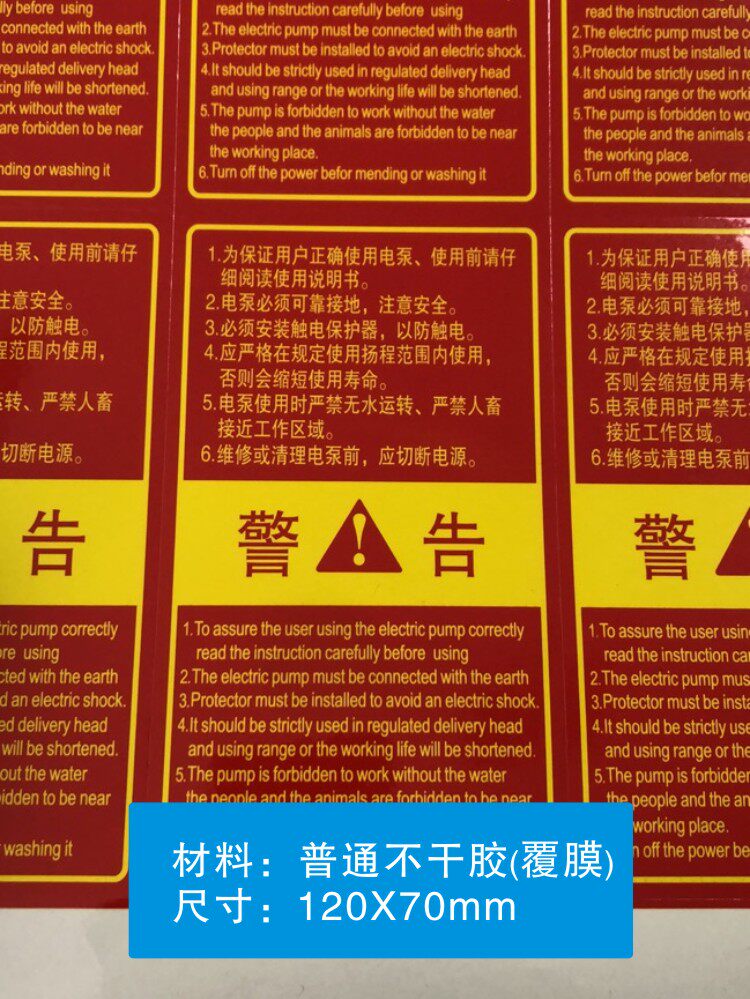 通用警告标志现货不干胶贴纸标签标贴设备机器水泵电机铭牌定制做