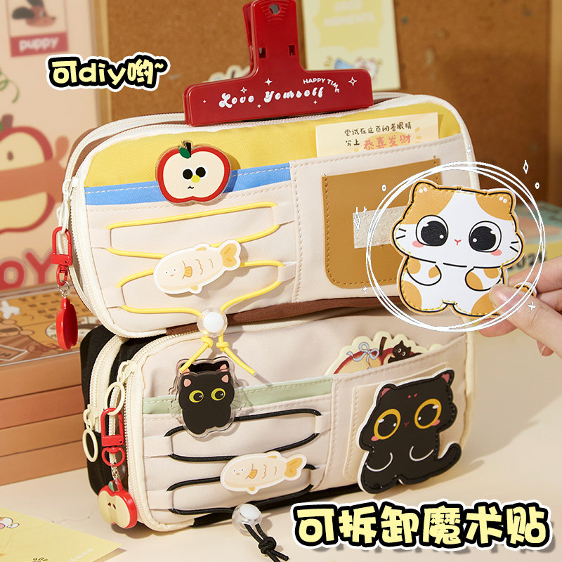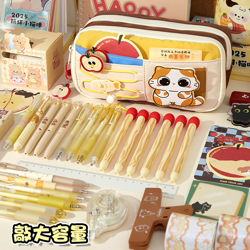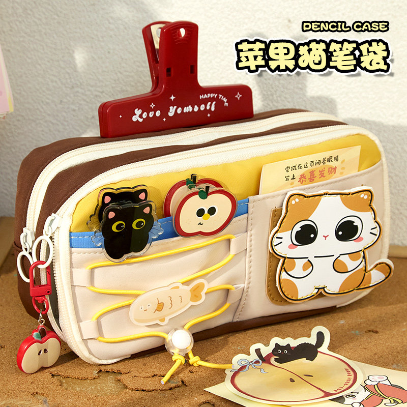 苹果猫咪多层分隔大容量笔袋女孩小学生儿童文具盒2026超火铅笔盒