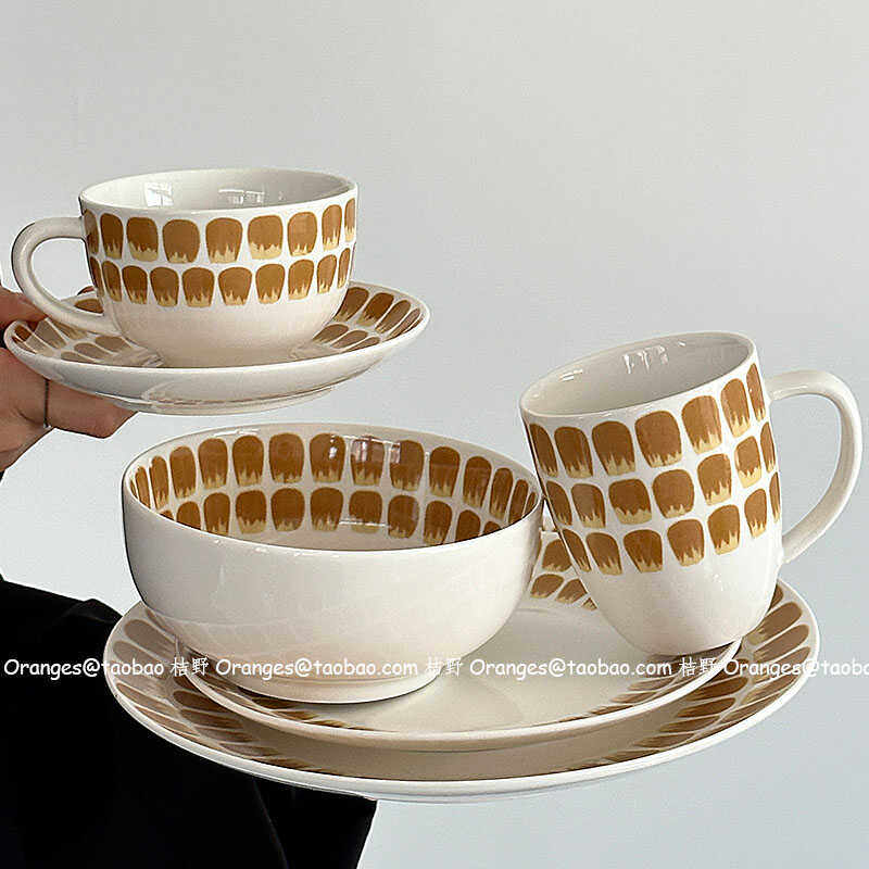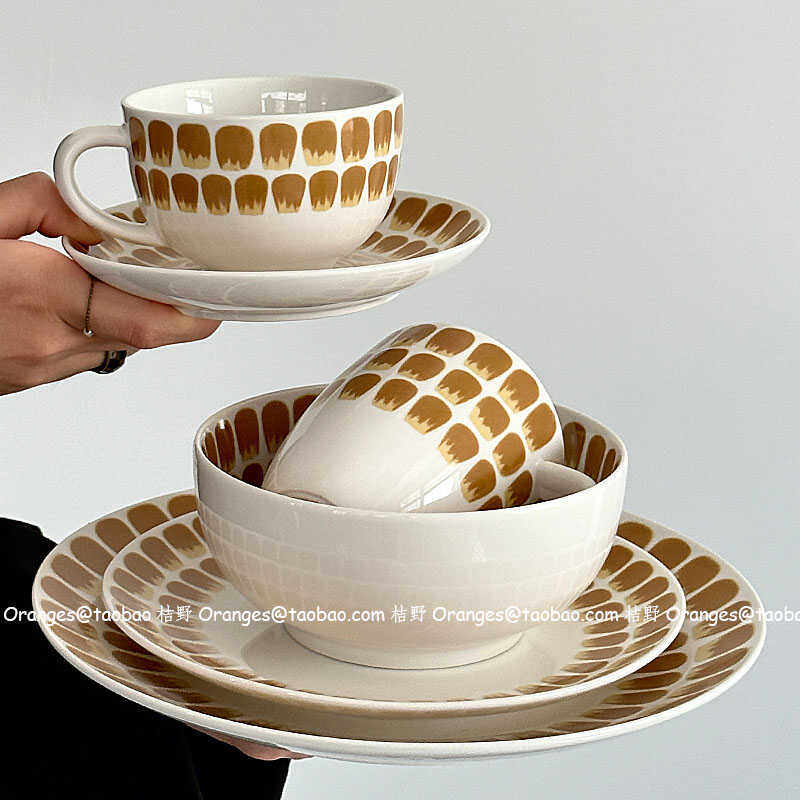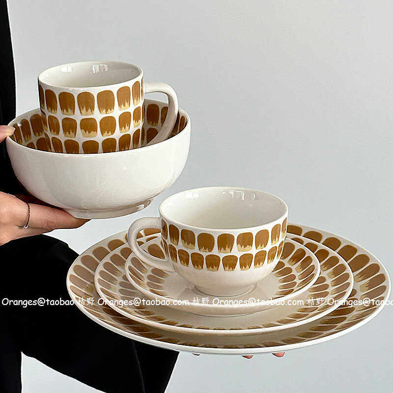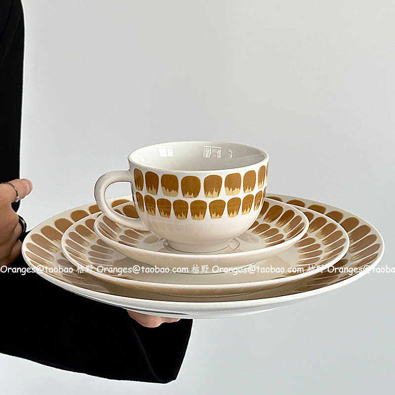 芬兰24小时同款复古黄点点陶瓷餐具家用碗碟西餐盘咖啡杯碟马克杯