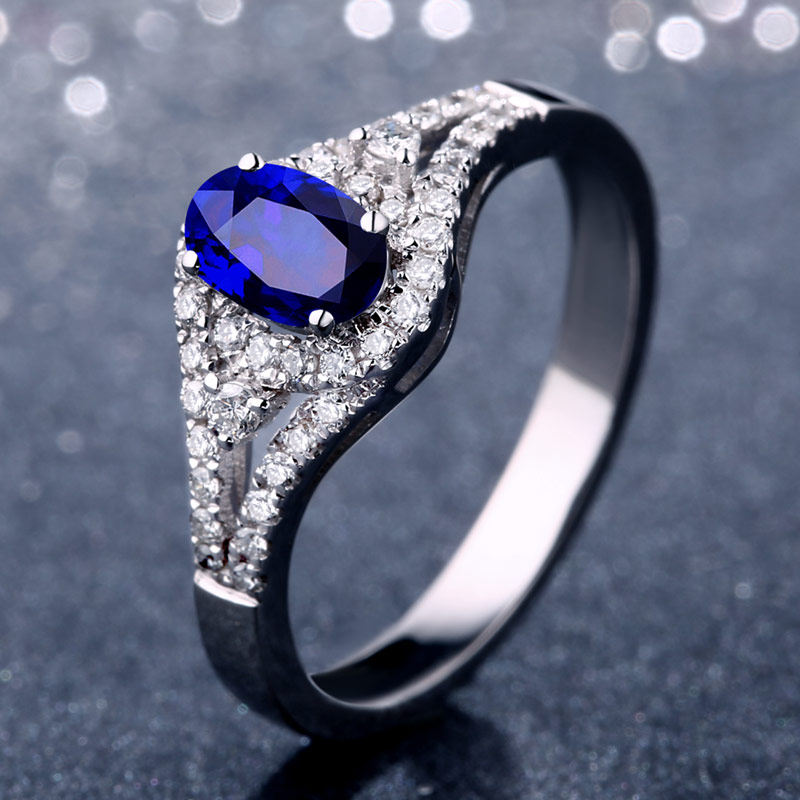 蜜安琪 0.51~2.04克拉椭圆形蓝宝石戒指 彩色宝石钻戒