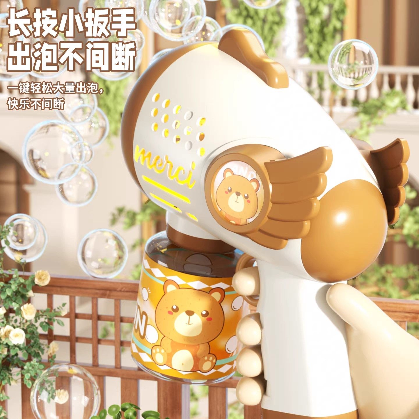 babycare新款泡泡机儿童手持电动泡泡枪吹泡泡补充液全自动玩具