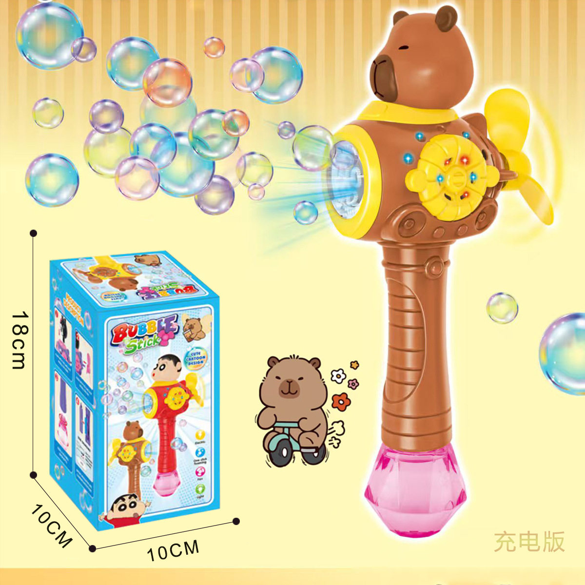 乐乐鱼2026新款电动新年烟花泡泡机醒舞狮灯笼儿童玩具手持加特林