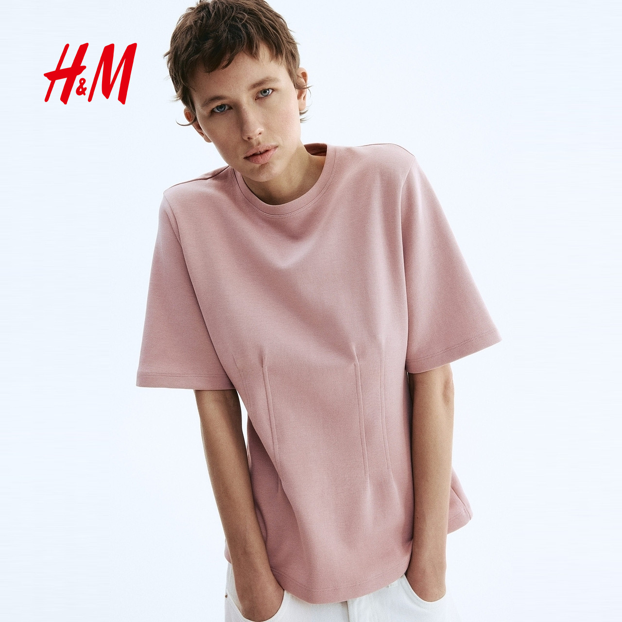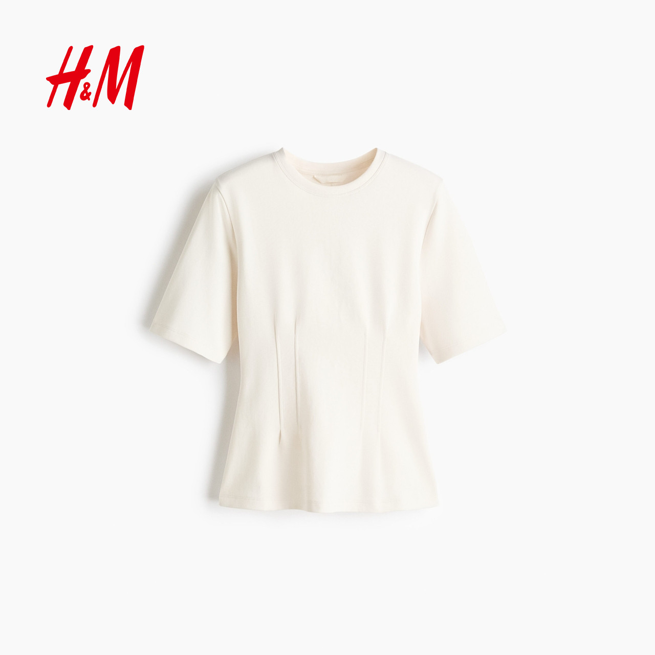 【博主推荐】HM女装T恤2026春季气质收腰双面布潮流短袖1323915