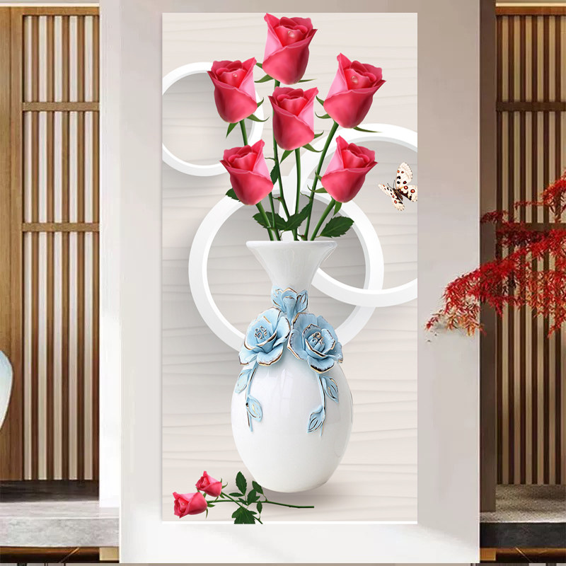 花卉玄关3d立体客厅墙贴装饰画走廊宿舍过道自粘贴纸墙面遮丑壁画