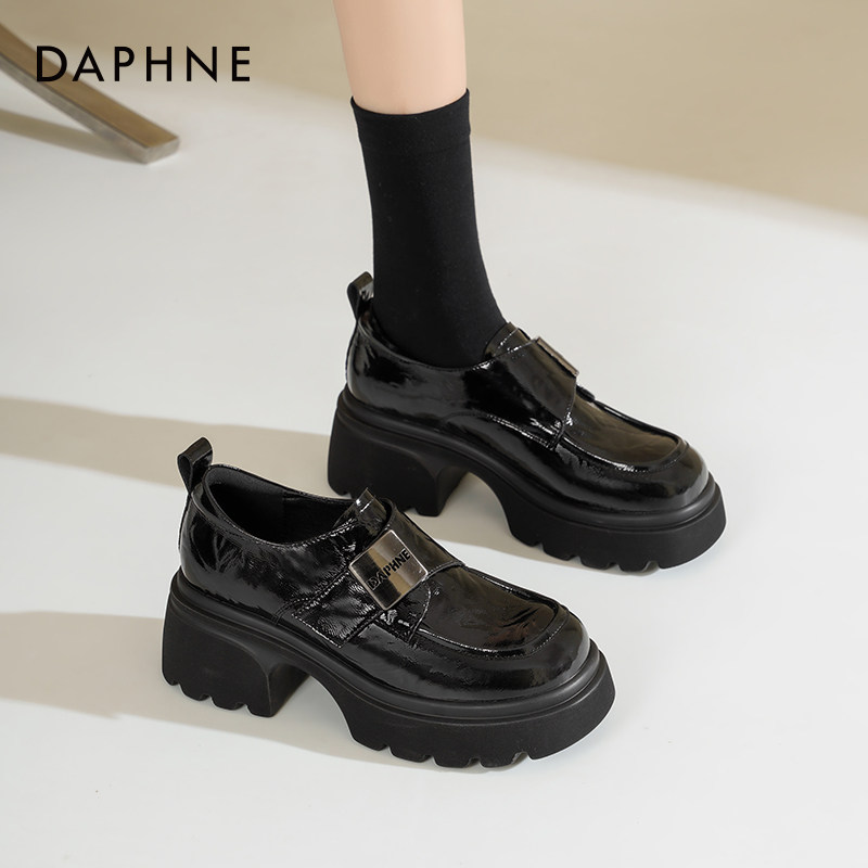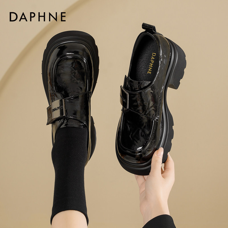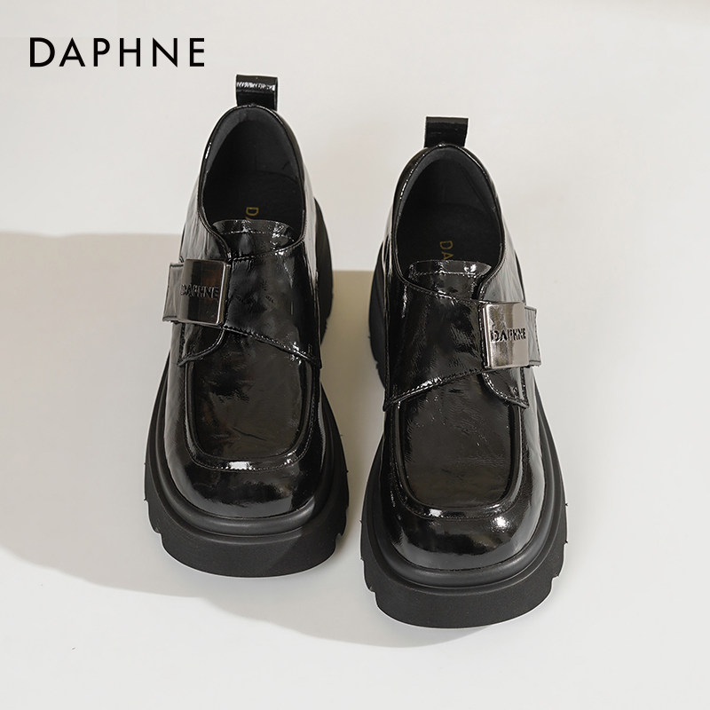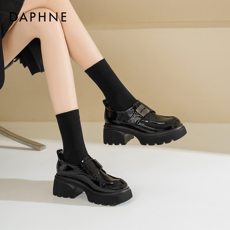 达芙妮厚底乐福鞋女2026新款英伦风鞋子女魔术贴单鞋黑色小皮鞋女