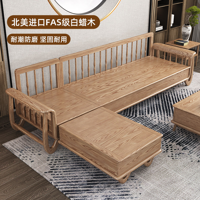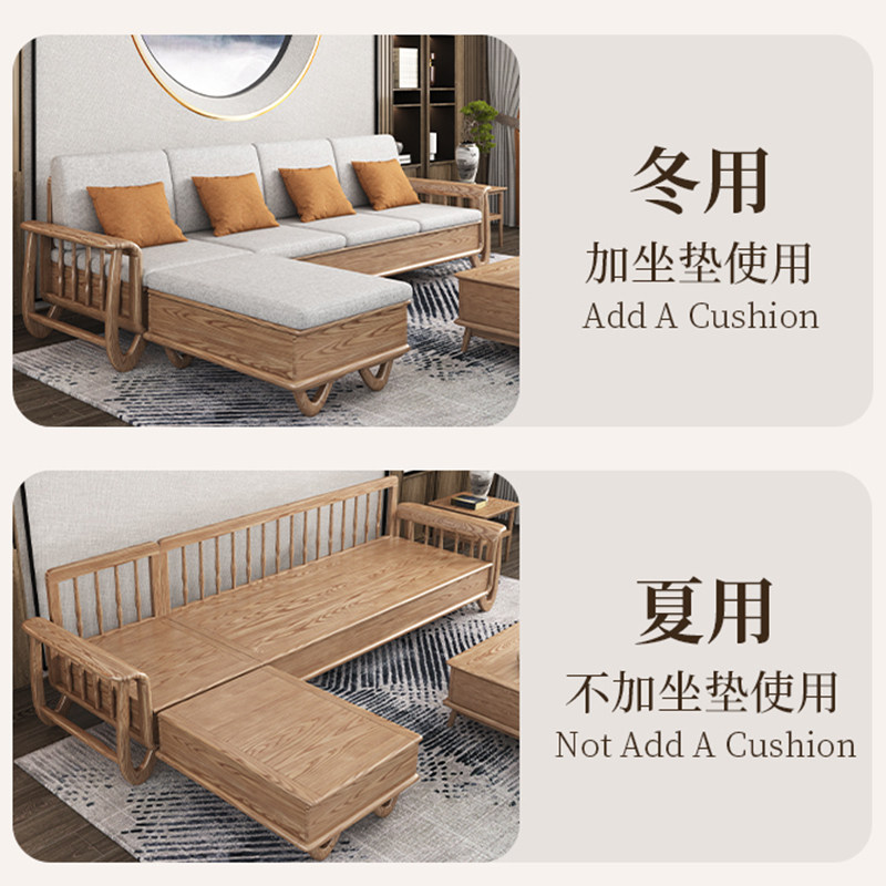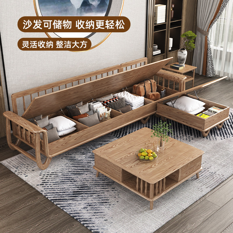 冬夏两用转角沙发新中式小户型直排现代简约客厅高箱储物实木沙发