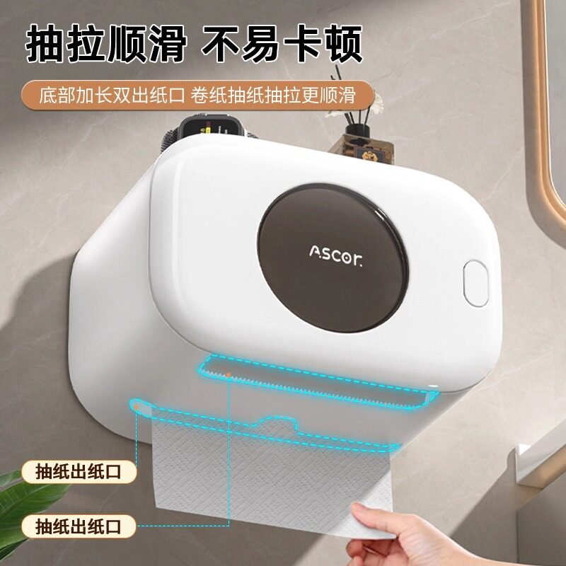 卫生间厕纸盒洗脸巾收纳盒壁挂式厕所纸巾盒抽纸高级感创意卷纸盒