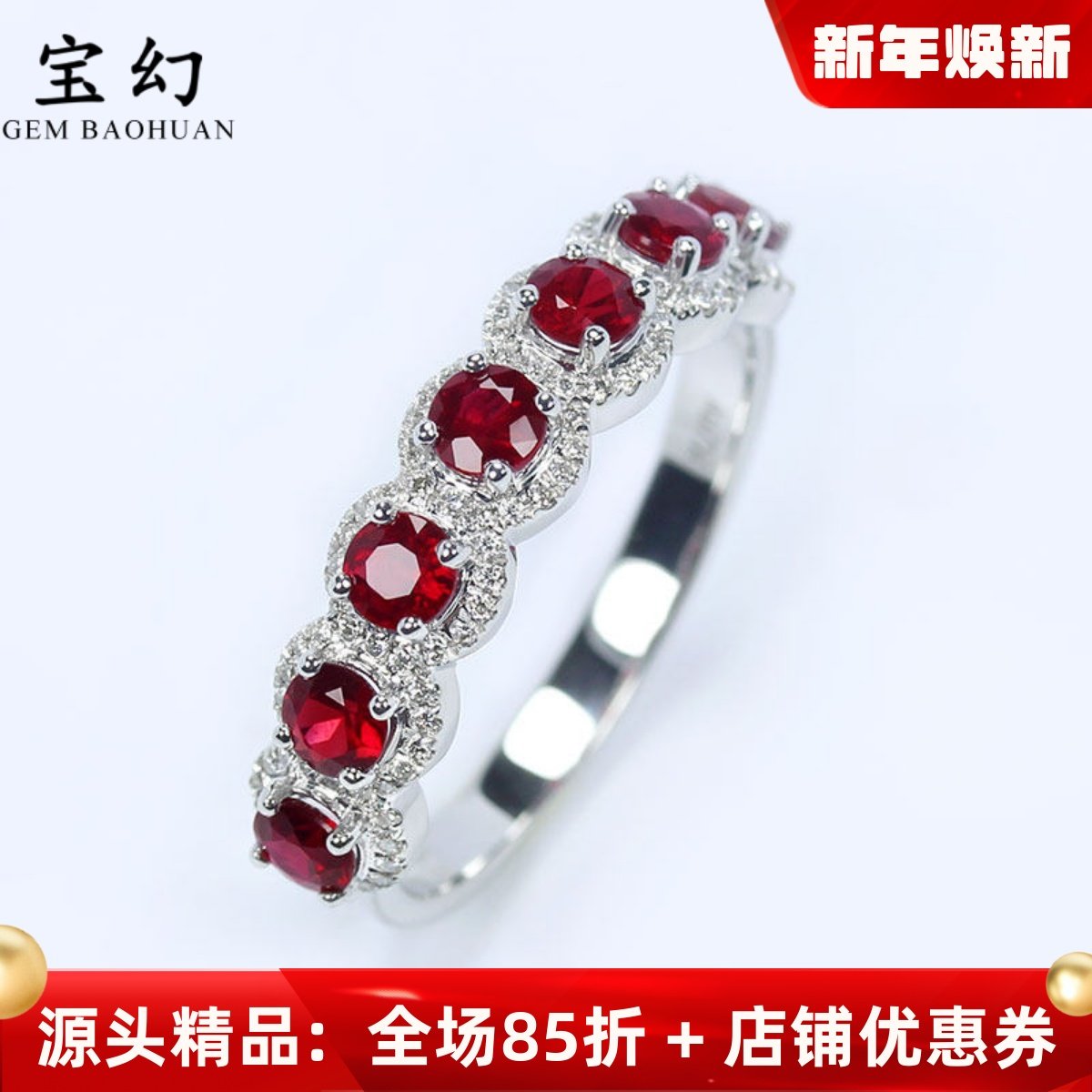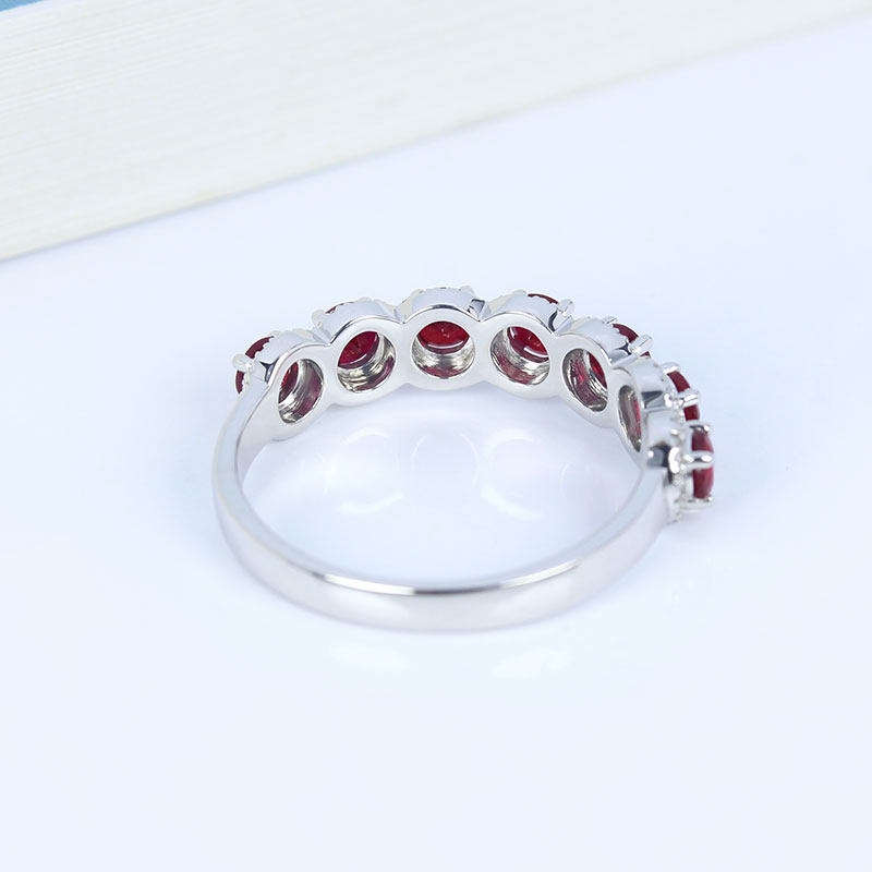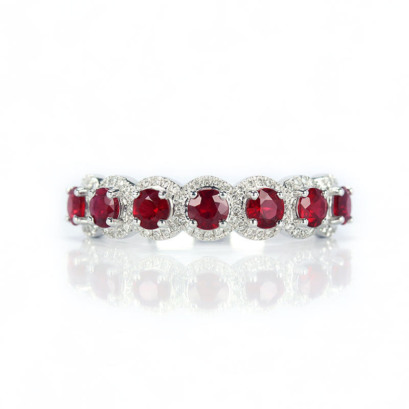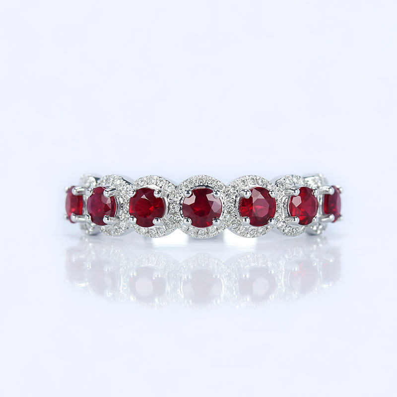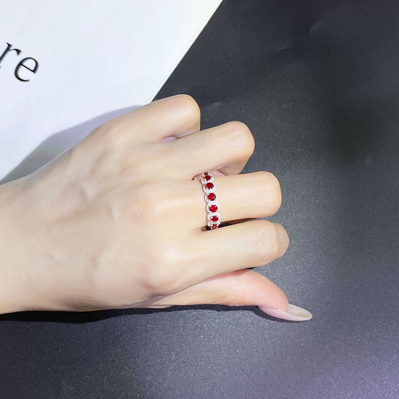 18K白金天然鸽血红宝石满镶钻石戒指 正红色圆形排戒正品手饰女款