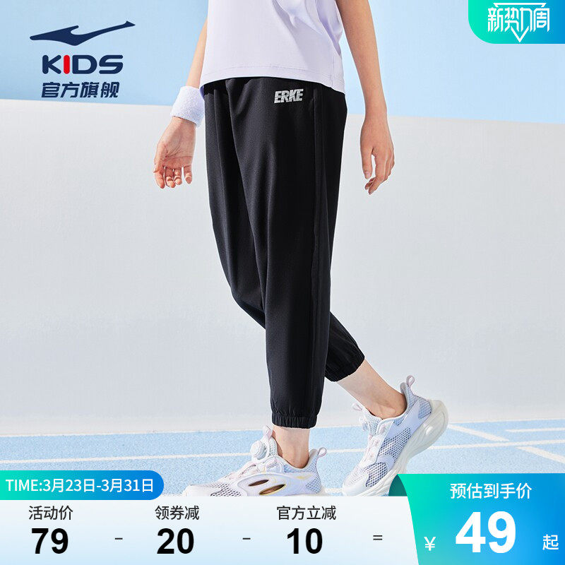 鸿星尔克童装防蚊裤夏季裤子男童运动裤学生女童弹力速干休闲长裤