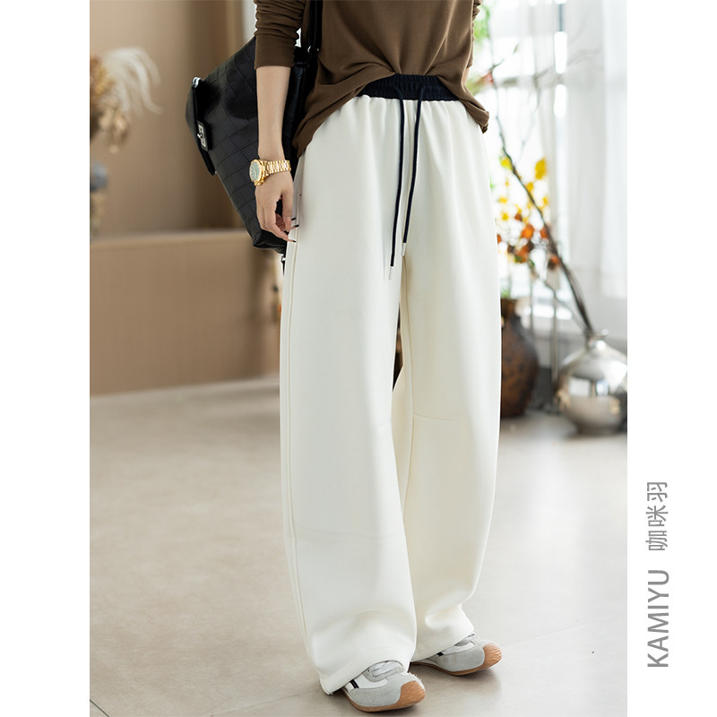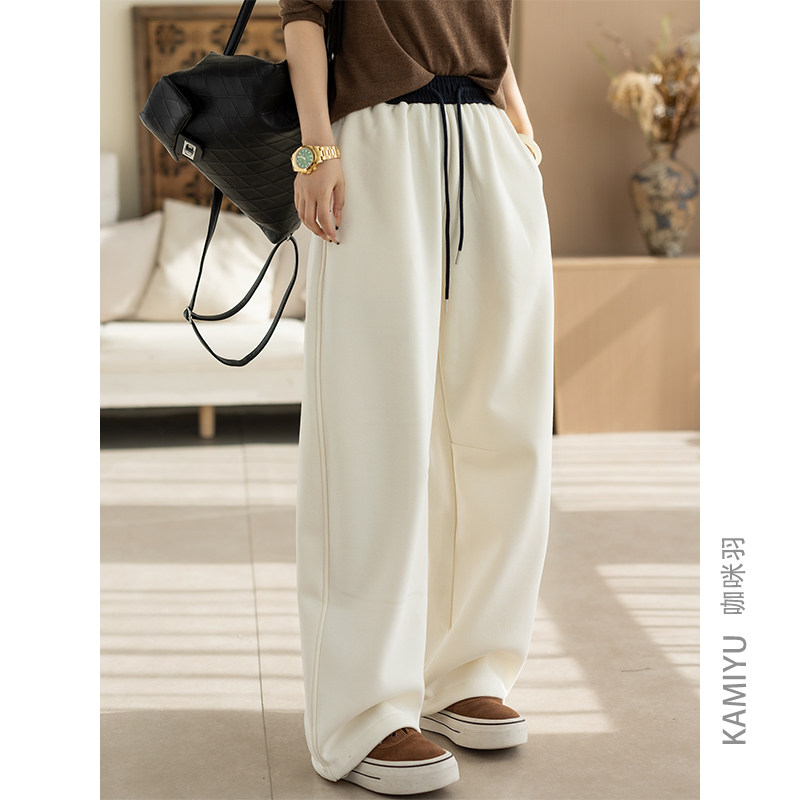 SIINSIIN加绒卫裤女2025新款阔腿运动裤休闲长裤冬季白色直筒裤子