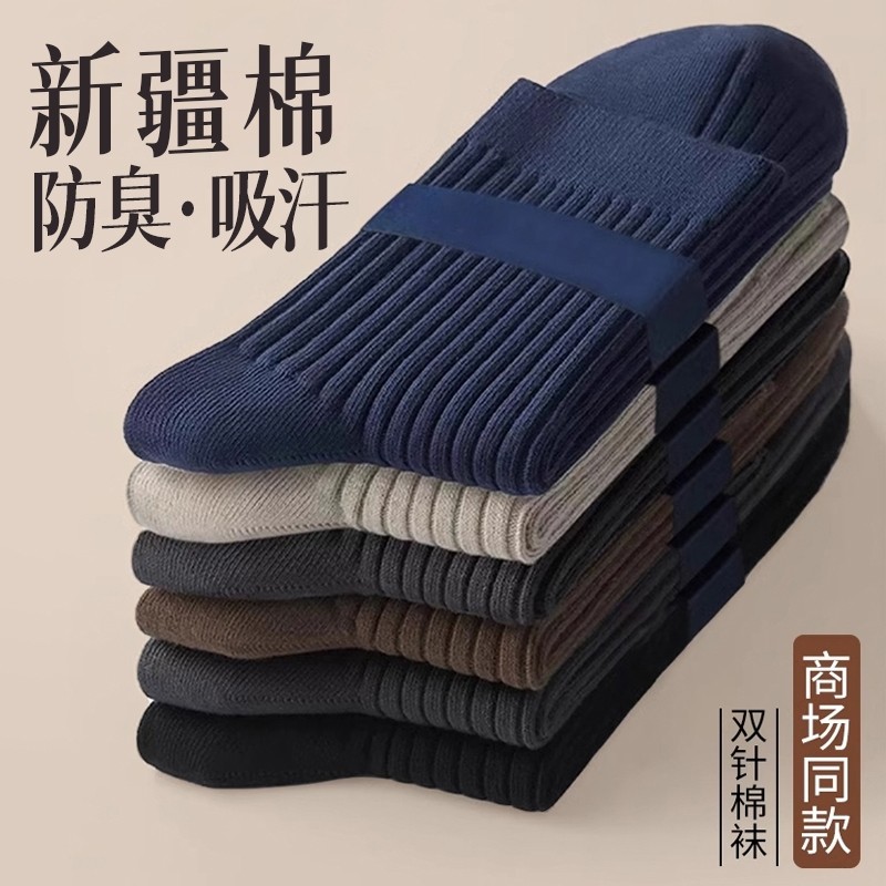 袜子男款春秋冬季新疆棉运动中筒袜商务吸汗防臭厚不闷脚男士长袜