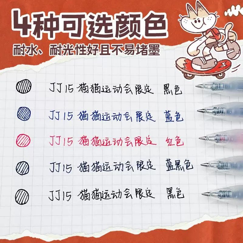 新款日本ZEBRA斑马中性笔猫猫运动会限定JJ15考试刷题黑笔限量版