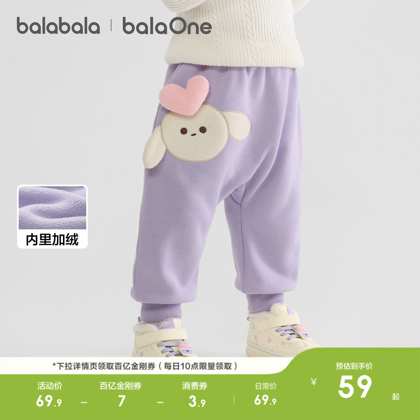 巴拉巴拉童装宝宝加绒裤子婴儿屁屁裤2026秋冬装儿童长裤加厚保暖