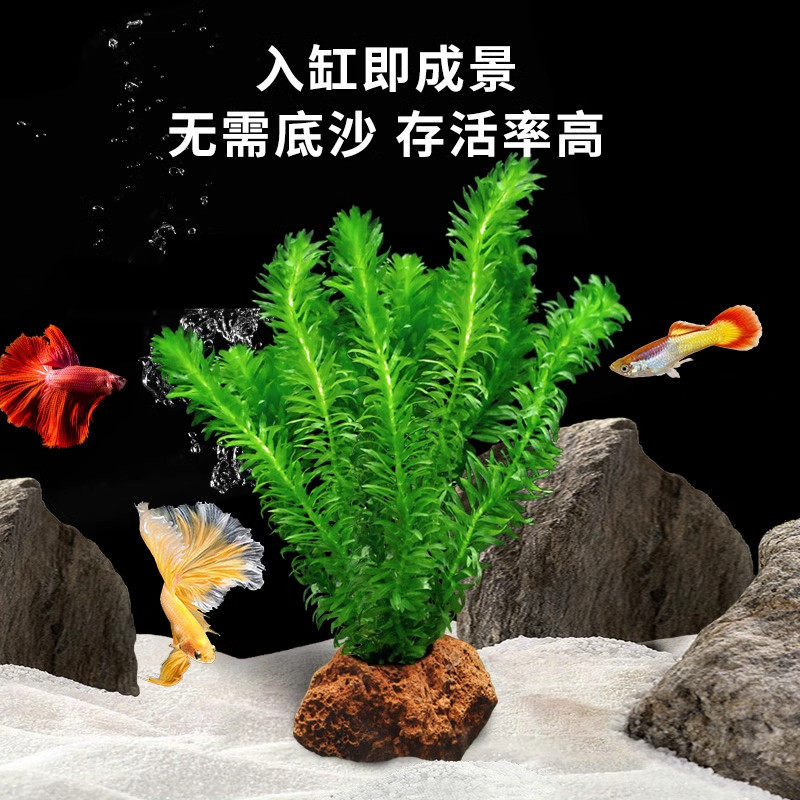 鱼缸水草植物真草造景火山石水培蜈蚣草阴性净化水质绿菊水榕套餐