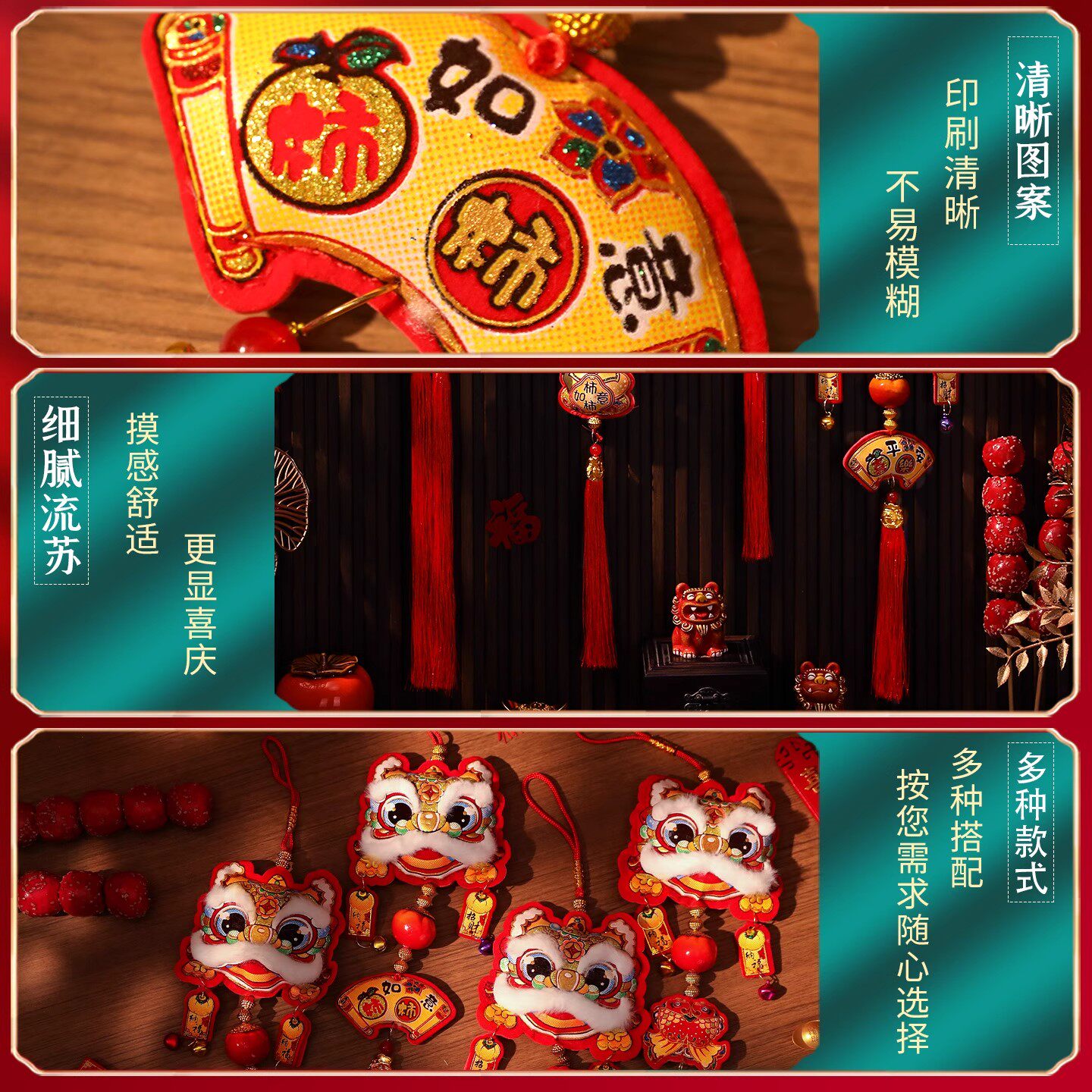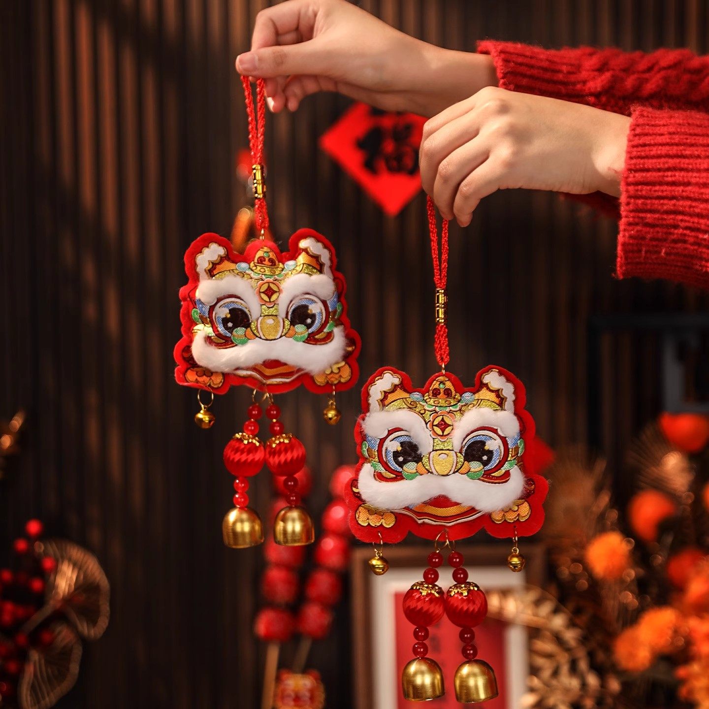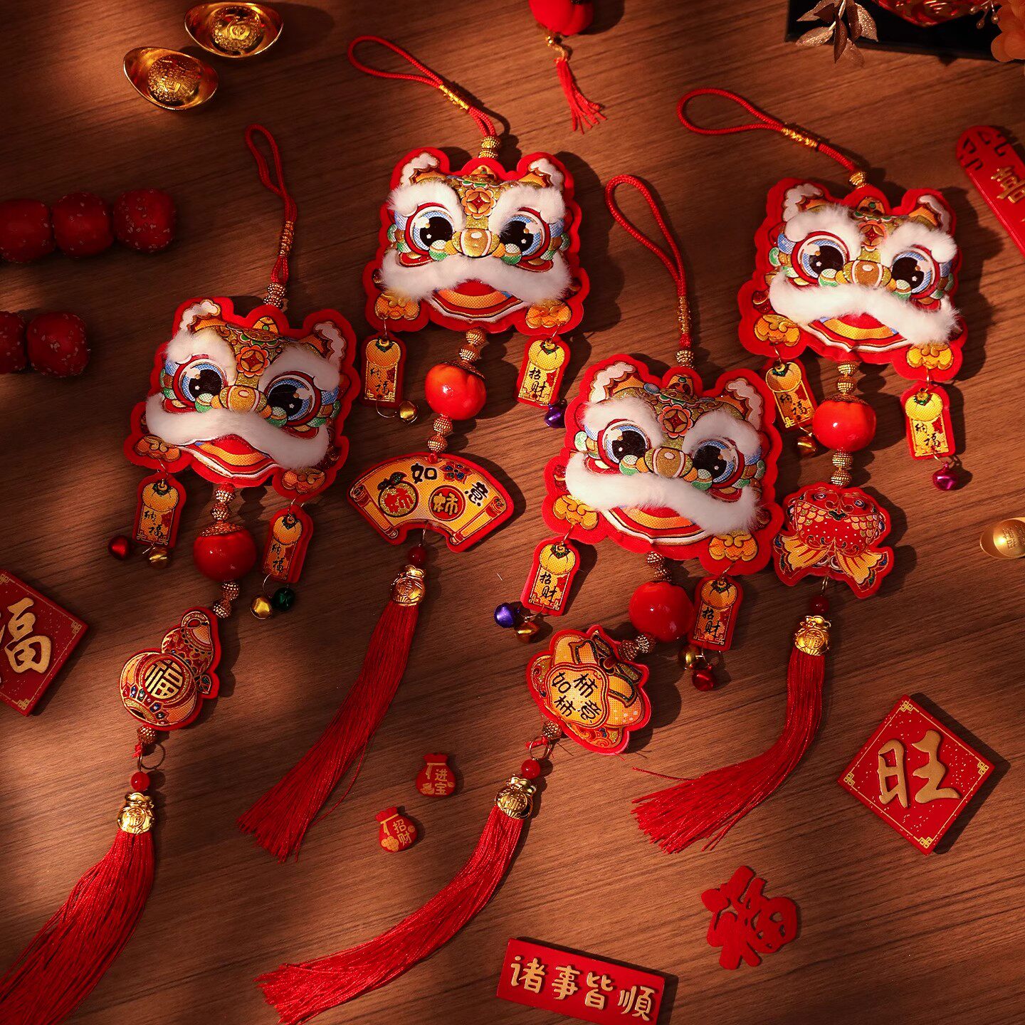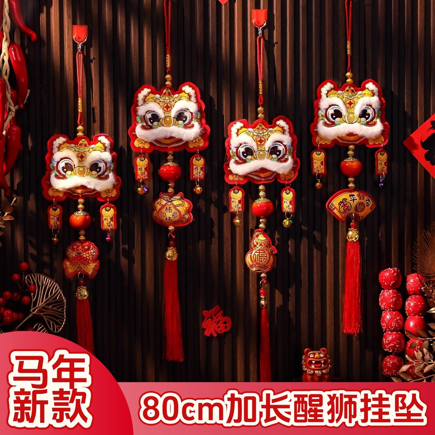 新年立体醒狮小挂件2026新款马年装饰福字串挂饰春节过年氛围布置