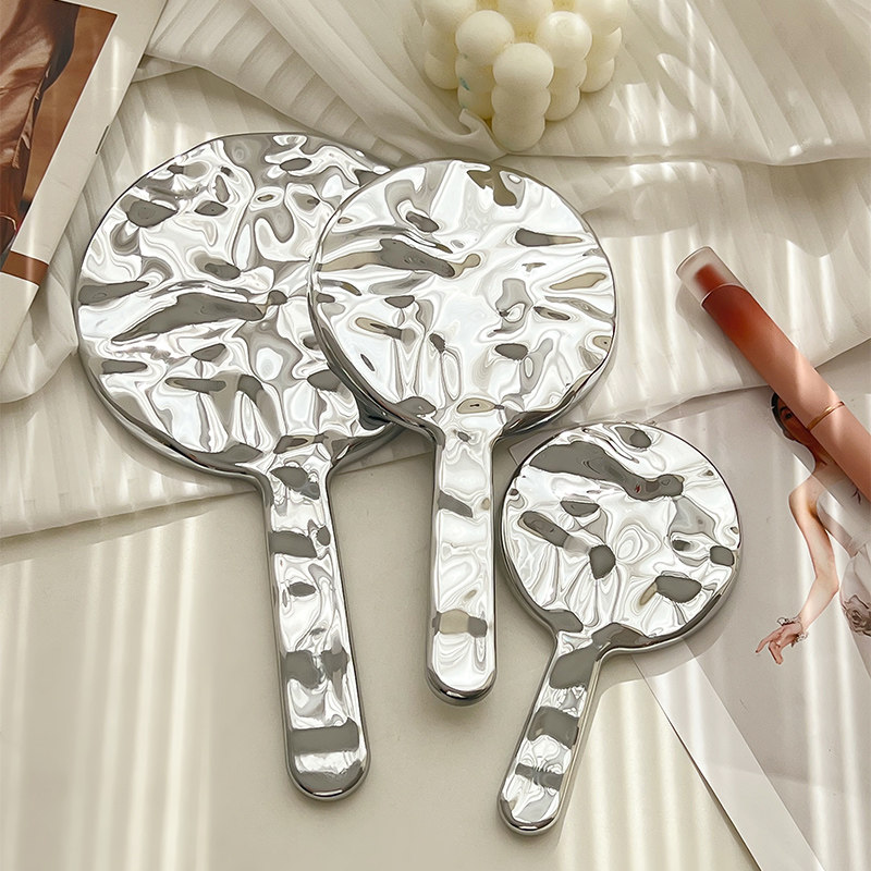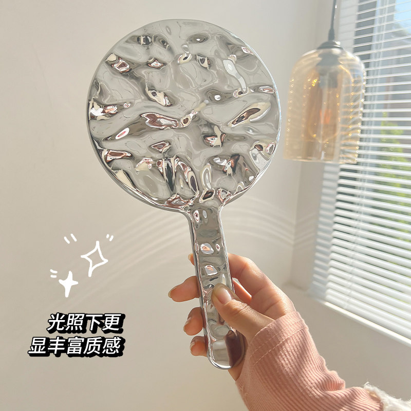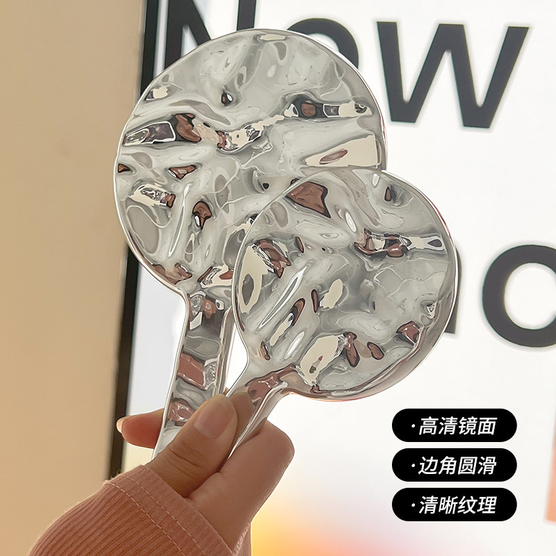 ins风手持化妆镜镜子高级手柄手拿随身便携公主镜学生高清轻奢